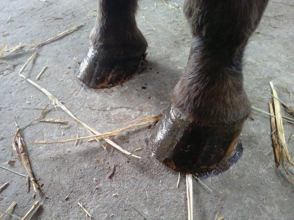 DéconnectéDire merci | mon dieu que c'est loooonnnng beaucoup de taf sur ces pieds...les antérieurs sont déformés au possible, quelle patho là-dessous? graisser mouais ça sert pas à grand chose, quand les sabots pètent c'est surtout que c'est trop long! Après la paroi un peu écaillée c'est pas grave du tout, le temps de récupérer une qualité de corne correcte. Il faudrait surtout des photos du dessous des pieds. |