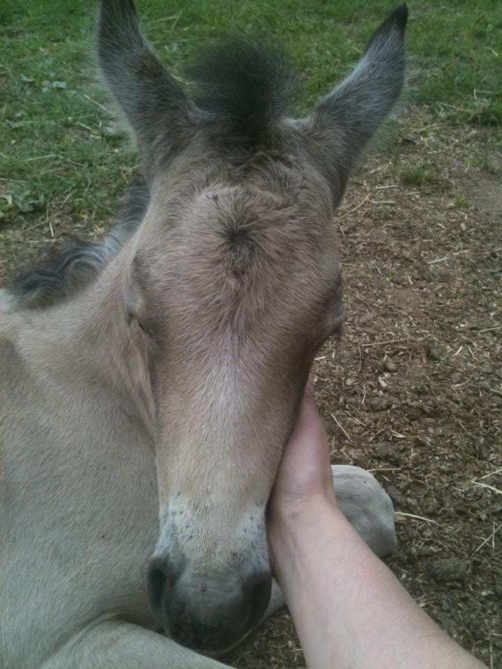 | Dire merci | Les poulains finissent toujours par s'intéresser à l'humain même si certains sont un peu sauvage au départ... Soyez pas trop frustrées ! Mieux vaut un poulain un peu timide qu'un pot de colle qui deviendra plus facilement irrespectueux... J'avoue que le mien vient mais je ne le touche pas trop et surtout j'essaye d'interrompre moi une caresse ou autre pour le limiter et qu'il ne demande pas. Il a d'ailleurs eu sa première coupe de cheveux ![]() Et son premier parage l'autre jour |