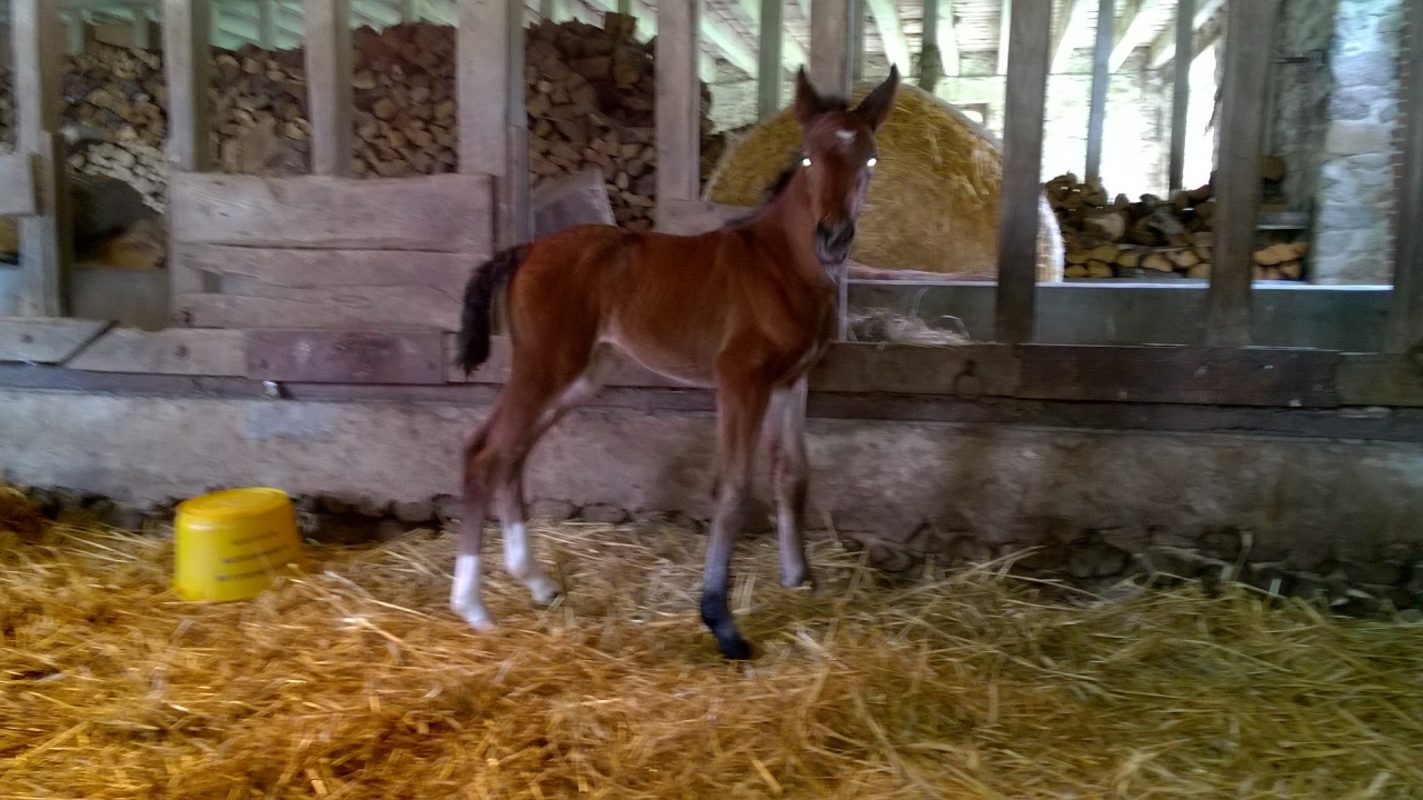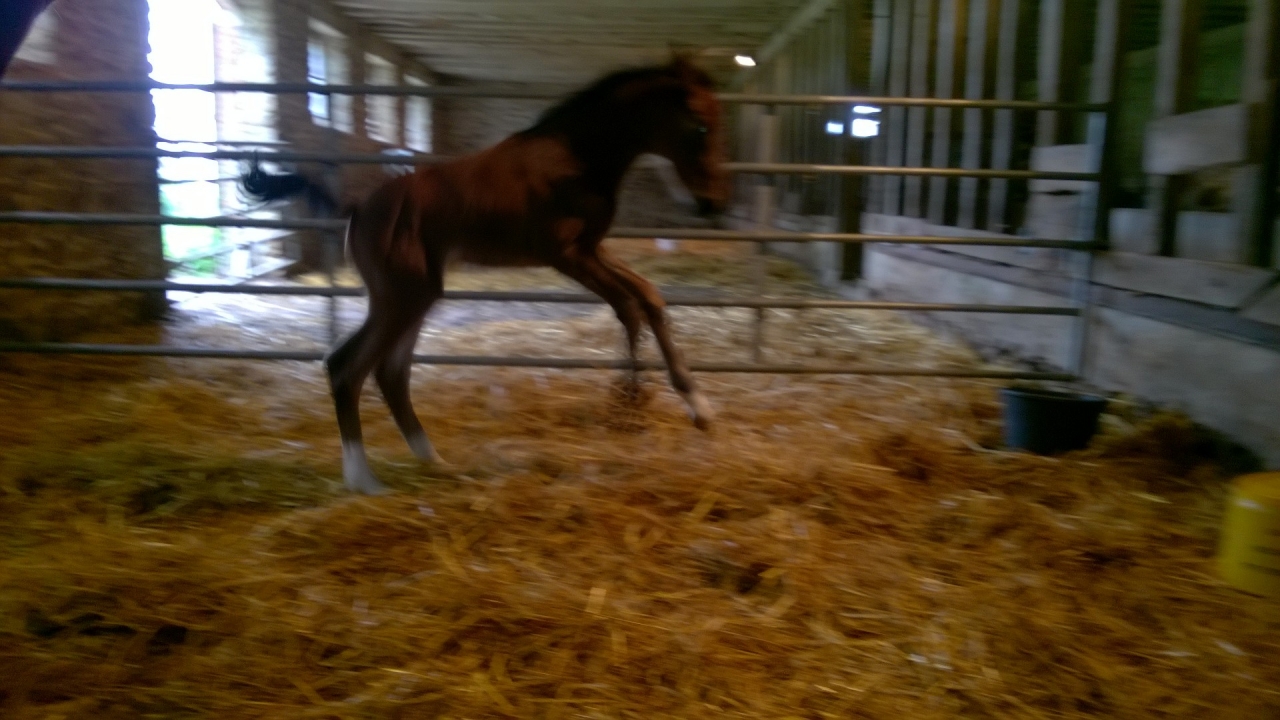 | Dire merci | Quelle jolie robe J'espérais que la mienne serait isabelle aussi snif ! Gamgee bien plus réveillée et vive hier : ![]() Elle galope sur place dans le boxe en enroulant l'encolure, elle saute partout..... une photo floue mais ça donne une idée L'ibérique ressort bien dans sa façon de se déplacer, j'aime beaucoup! ![]() Elle va sortir au paddock aujourd'hui pour la première fois, j'ai hâte de la voir évoluer dehors! |