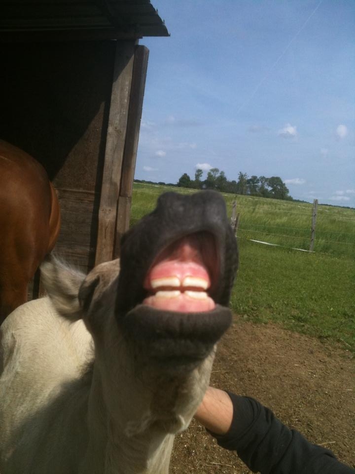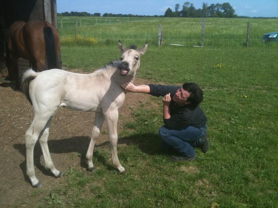 | Dire merci | Coucou ! J'ai une question à tous les propriétaires de poulinous, le poulain de mon chéri est né dimanche dernier, il ne se laissait pas trop approcher au début (disons qu'à 1m50, il allait se réfugier chez maman) du coup, tous les jours on s'installe un peu dans son pré pour l'habituer à notre présence et ça marche plutôt bien, je peux désormais le caresser, le gratouiller et il vient même de lui-même. Par contre, je n'ai aucune expérience en poulains donc je voulais savoir: Dois-je le laisser me teter les doigts ? Mon copain, ça n'a pas l'air de le déranger (il a déjà eu d'autres poulains avant lui), mais je suis partagée sur la question, il a vite tendance à attraper mes vêtements pour les prendre en bouche (d'ailleurs il goute à tout en ce moment). Dois-je freiner cette attitude ? |