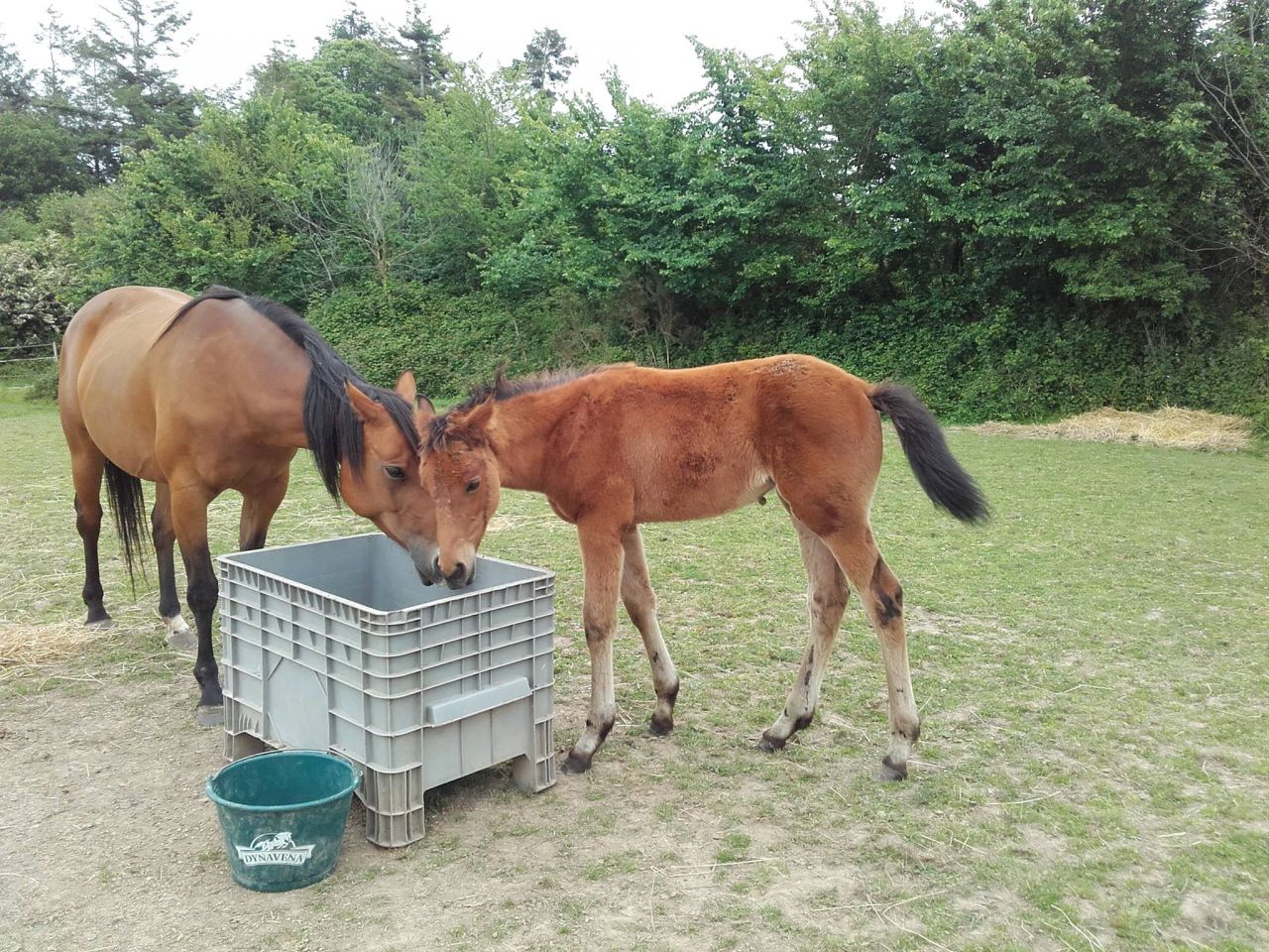| Dire merci | La mienne qui a eu un "loupé" ... au final, le chantage de la gratouille fonctionne a merveille donc c'est plutot tres pratique ! y'a juste le moment ou je met la tetiere dans la boucle qu'elle n'aime pas mais ca s'estompe de plus en plus La concernant, ca baigne chez elle .... ca grandit encore et encore ! la derniere pseudo toise approximative l'estimait a 1.10m pour 1mois et demi .... quand je la vois, j'arrive pas a me dire qu'elle n'a pas 2 mois Elle a eu son 2eme changement de pré samedi (j'ai ouvert un fil qui donne acces a une autre partie de pré) elle a suivi les adultes sans broncher ... et s'est fait un délire galop plein c*l pendant 20 minutes ! bref, la routine a la maison quoi |