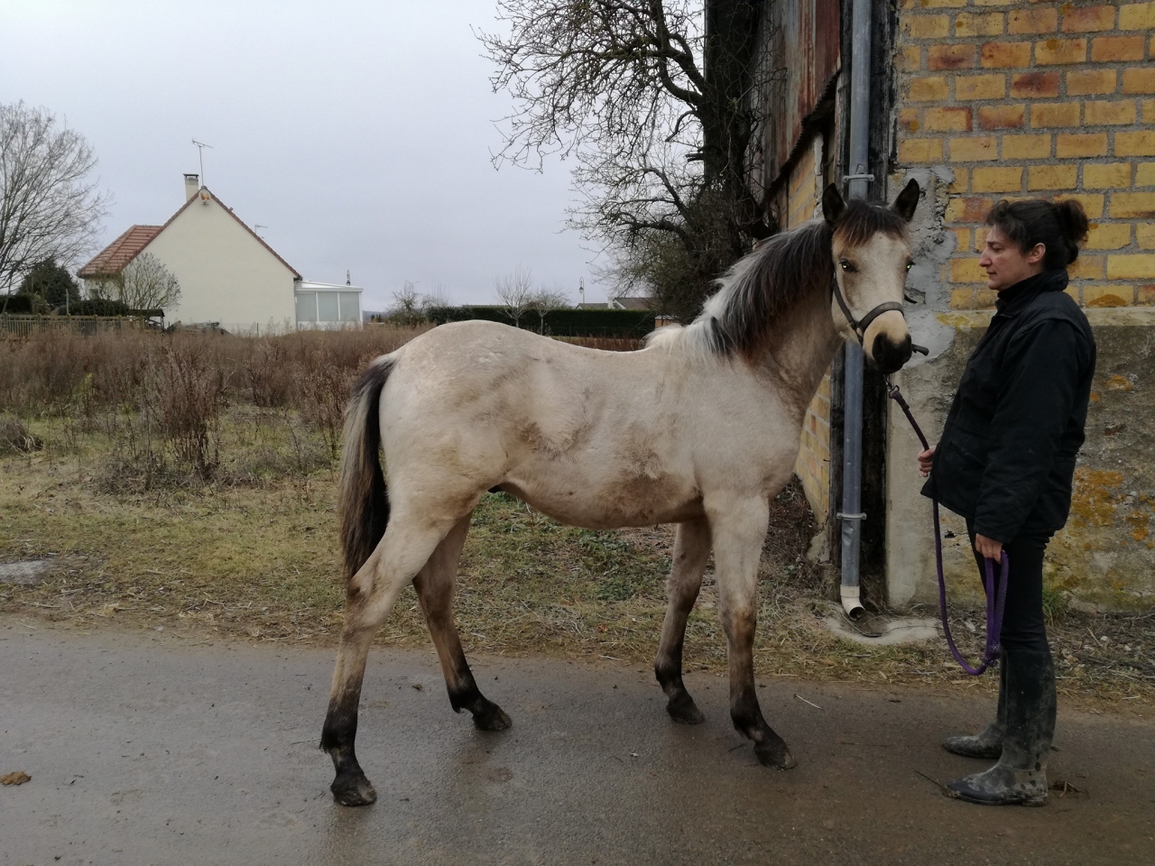 rien de bien méchant mais il fallait recadrer et surtout que je mette en place un cadre ferme. En une semaine c'était terminé et depuis c'est un ange. Il est très proche de l'homme, c'est vraiment super. Tous les dix ou quinze jours je fais une petite séance de travail à pied, il capte tout vraiment vite. À moi d'être précise et fine dans mes demandes. Ce n'est pas toujours évident mais on avance sur le bon chemin. En tout cas j'adore mon poulain