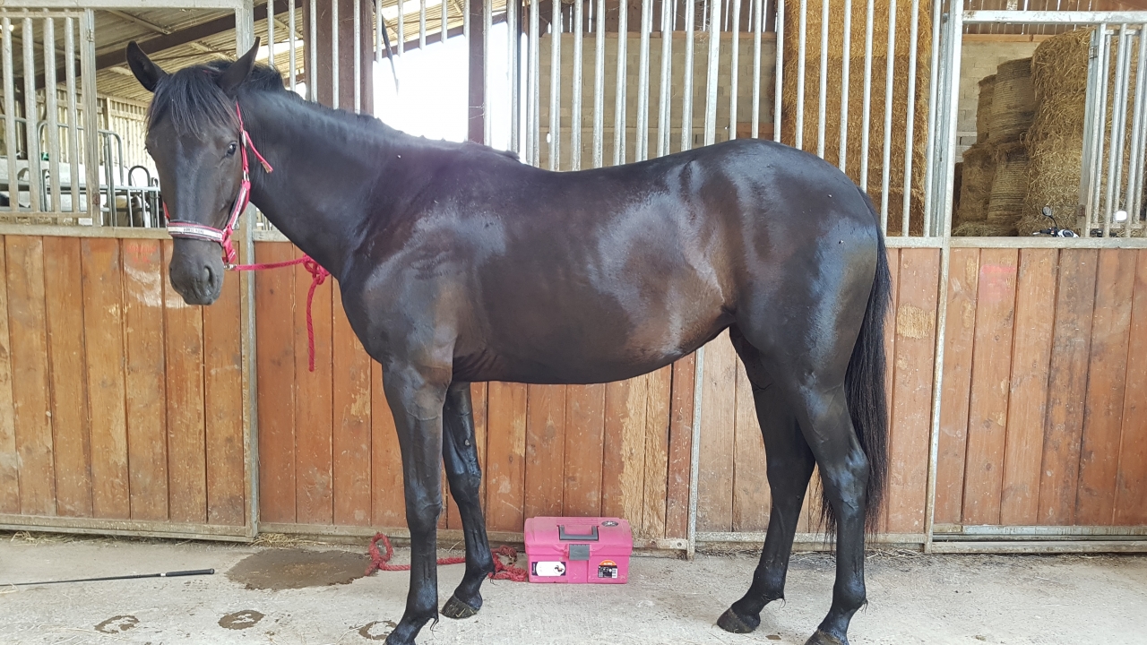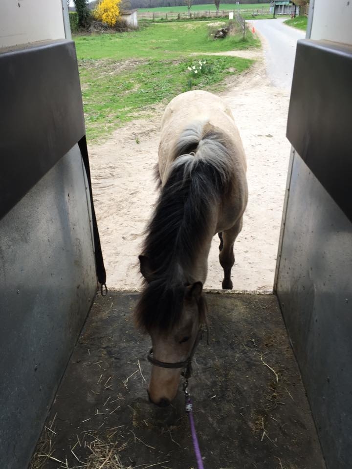 | Dire merci | Je rejoins le club des G Le petit est arrivé il y a deux semaines, on a fait 800km de route ensemble vu que je suis allée le chercher dans le sud! Il s'acclimate pas mal, en revanche il n'a jamais vu le maréchal, et la prise des pieds reste compliquée. Je travaille ça un peu tous les jours avant de l'appeler, mais les postérieurs restent encore délicats, il me les "balance" plus qu'il ne les donne... |