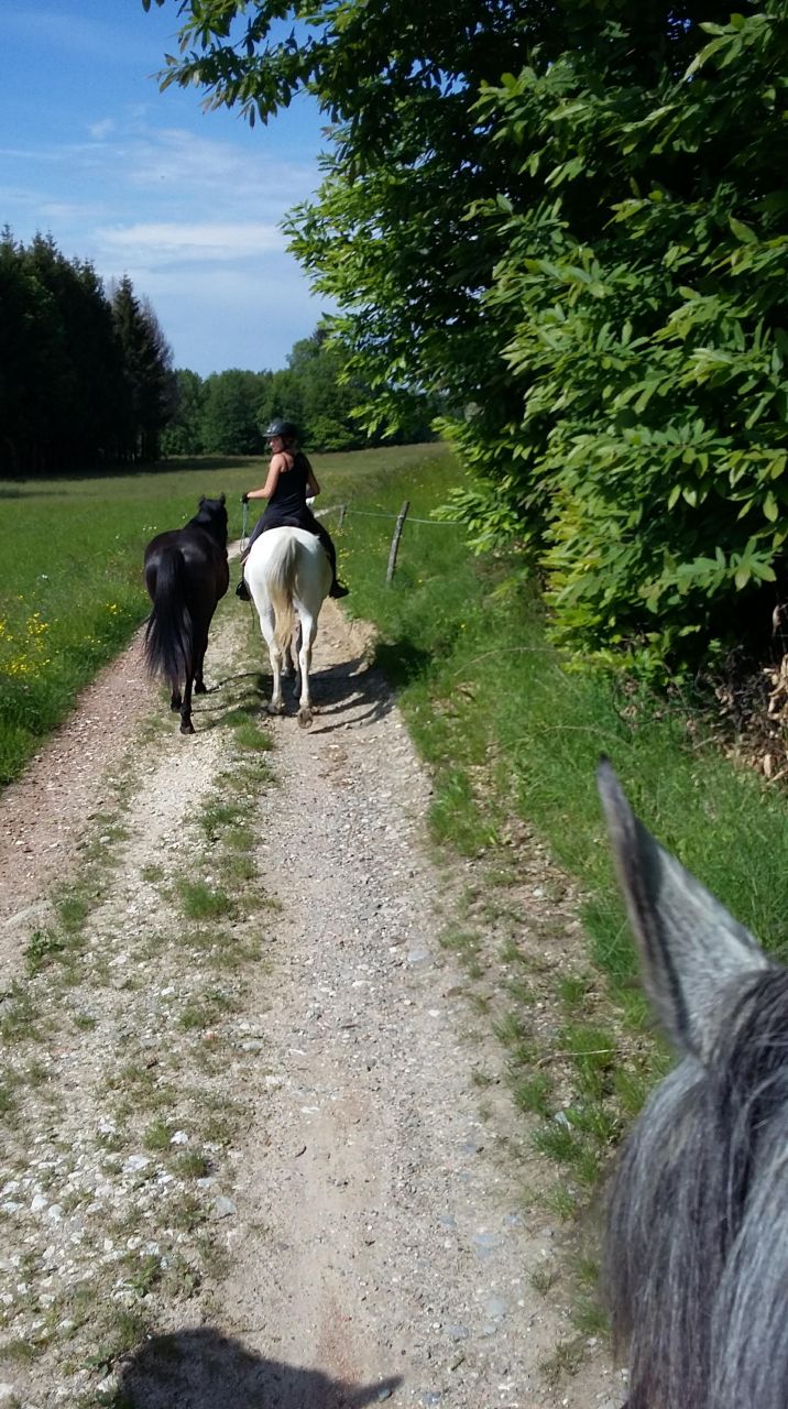 | Dire merci | 1ere sortie en dextre, pouliche exemplaire:![]() Le seul truc c'est que des fois la longe s'enroule autour du couard du cheval monté car la pouliche change de côté et il n'apprécie pas du tout cela 😂 |