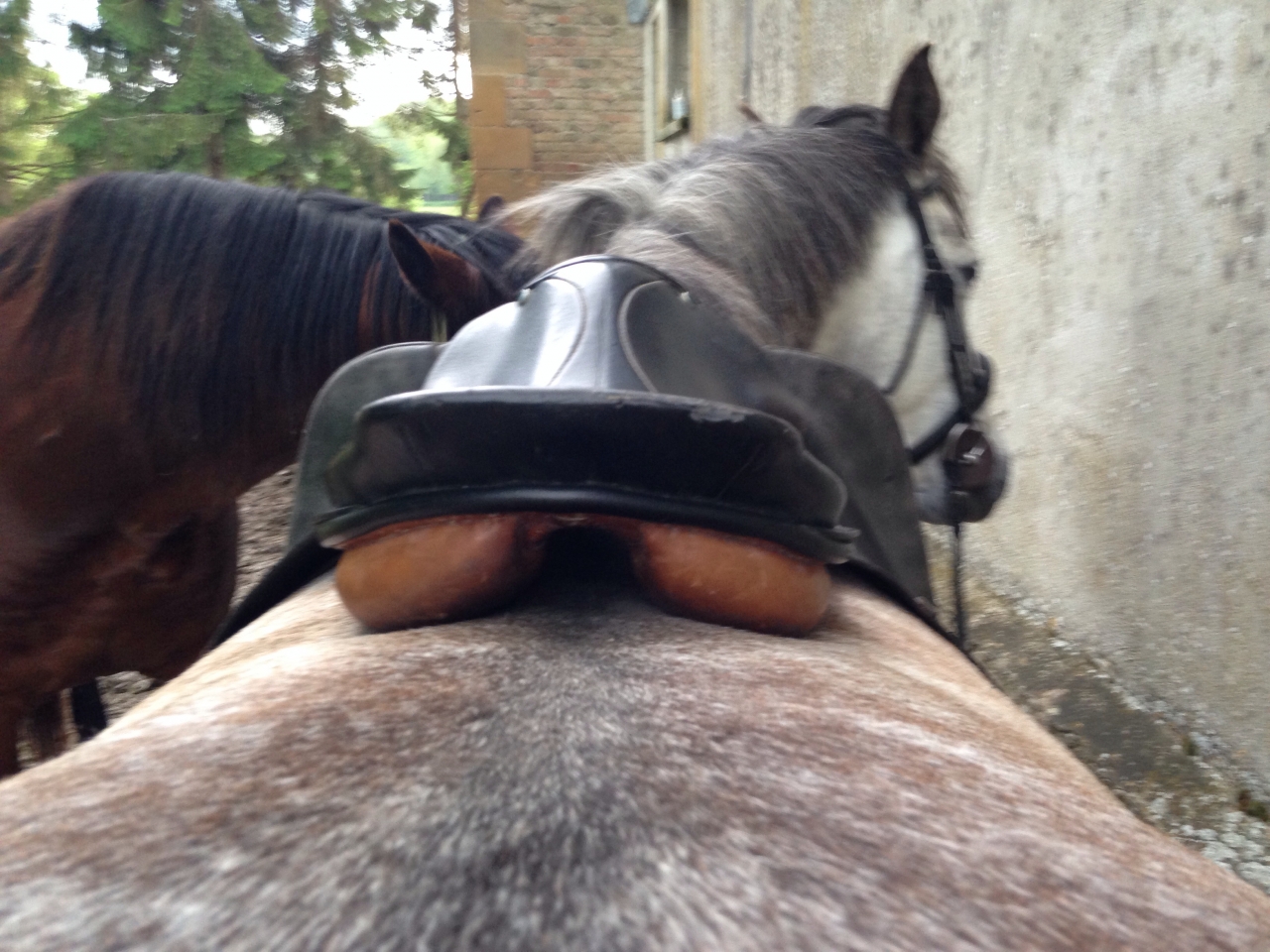 | Dire merci | Sinon hier je discutais de mes soucis de selles avec mon voisin. Il m'a prêté sa vieille stubben siegfried. Arcade B (donc 29cm si je me trompe pas) Donc trop étroite pour ma jument, mais on pu voir quand même le rendu général. Ben pas si mal! La gouttière est carrément trop étroite, les matelassures sont dur comme du béton, mais ça pose pas si mal. Bien sur, or de question que je monte la jument avec. ![]() ![]() ![]() Si je trouve une plus moderne arcade plus ouverte, ça devrait pouvoir le faire! |