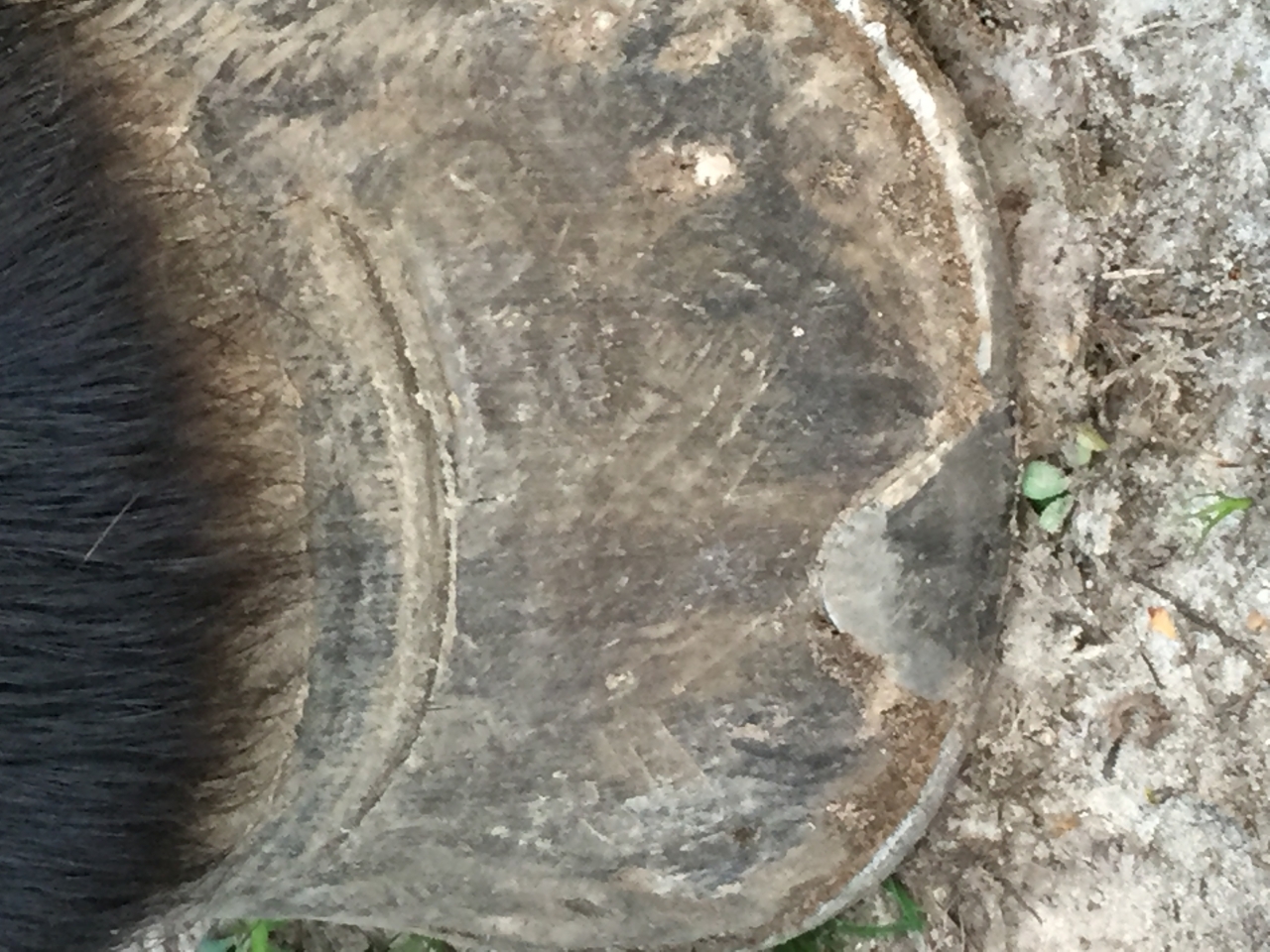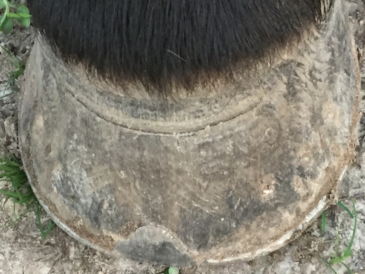 | Dire merci | J'ai eu le cas sur mon cheval pieds nus, sur les 4 pieds en pire. En gros ça faisait comme si la fissure que le tien a, continuait jusqu'à l'arrière du pied, ce qui donnait une impression d'un double sabot. Comme si une nouvelle corne poussait une ancienne. Je sais pas si c'est clair? Faudrait que je retrouve les photos que j'avais prises. Mais en tout les cas mon MF de l'époque n'avait jamais su me dire ce que ça pouvait être... J'avais posté sur le forum a l'époque et pareil personne n'avait jamais vu ça. Bon je sais ça t'aide pas |
