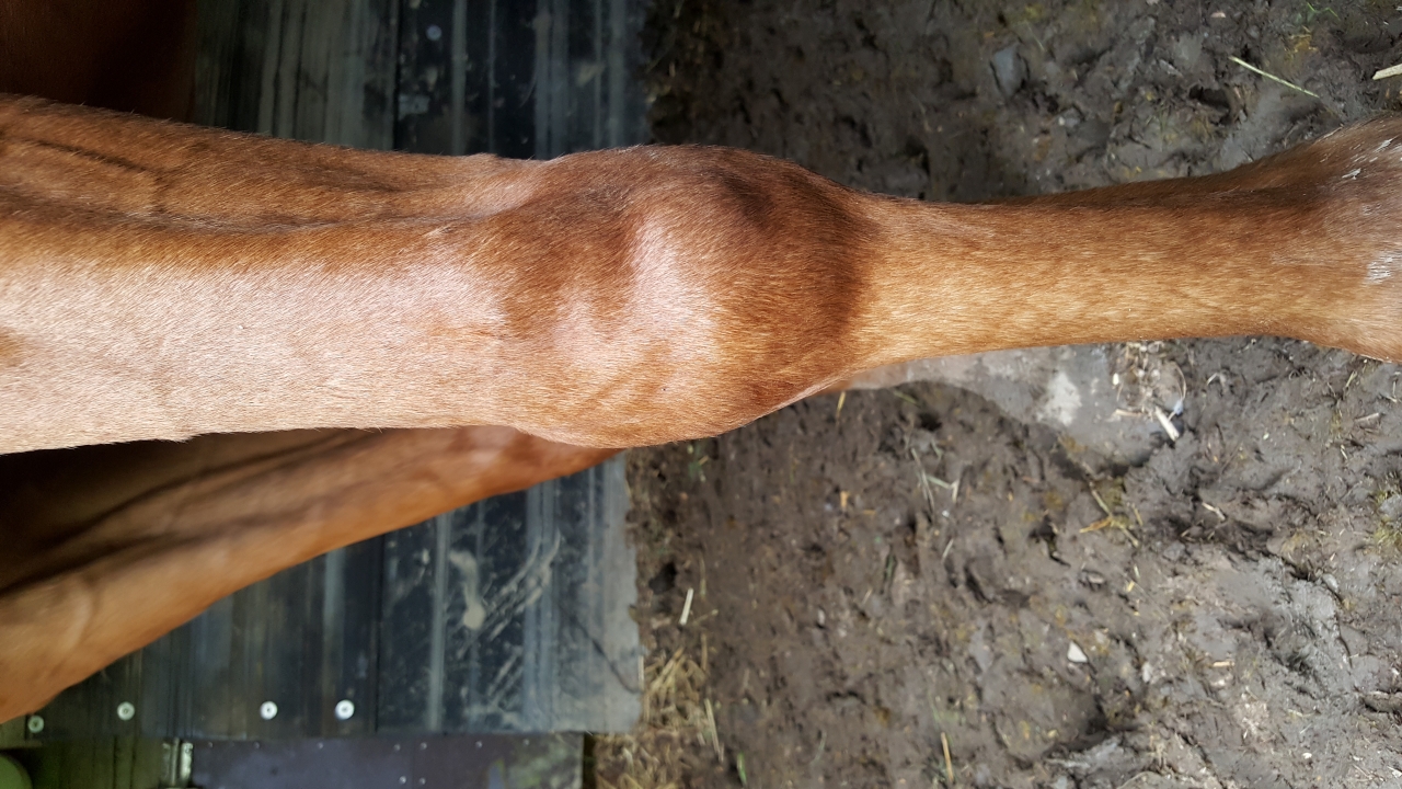 | Dire merci | Hello! Bon tout d'abord : je vais évidemment faire venir un véto hein. Mais en attendant : Trouvé mon cheval avec une boule sur le genou aujourd'hui. C'est un hygroma d'après vous? En fait c'est pas la première fois. Il avait déjà eu ça il y a 2 ans et c'était parti tout seul. .. exactement au même endroit et dans les mêmes conditions les 2 fois : Cheval au pré 24/24 et ne travaille pas. Pas de boiterie. ![]() |