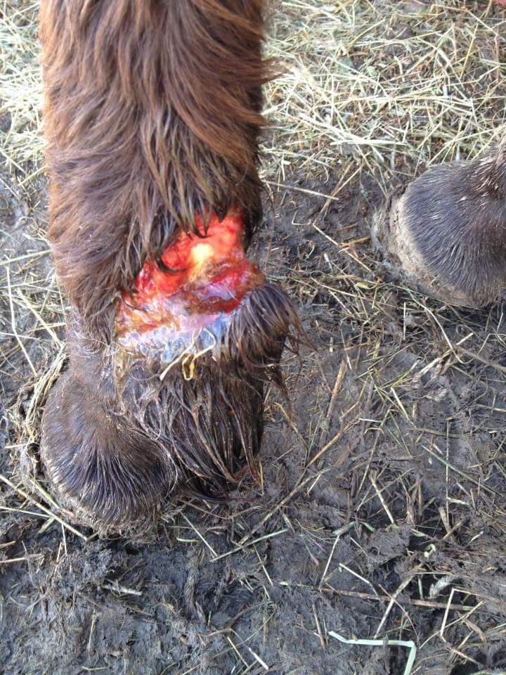 | Dire merci | si c'est un sanglier ou chevreuil, c'est vraiment pas de pot j'en héberge en hiver, ils viennent se servir dans le foin des chevaux, les jeunes marcassins viennent dormir dans la cabane, les hardes traversent également le pré (clotures cassées bien souvent le fil du bas) les chevreuils y passent aussi en période de chasse avec les chiens aux fesses jamais eu de telles blessures ou accidents en 10 ans avec les chevaux |