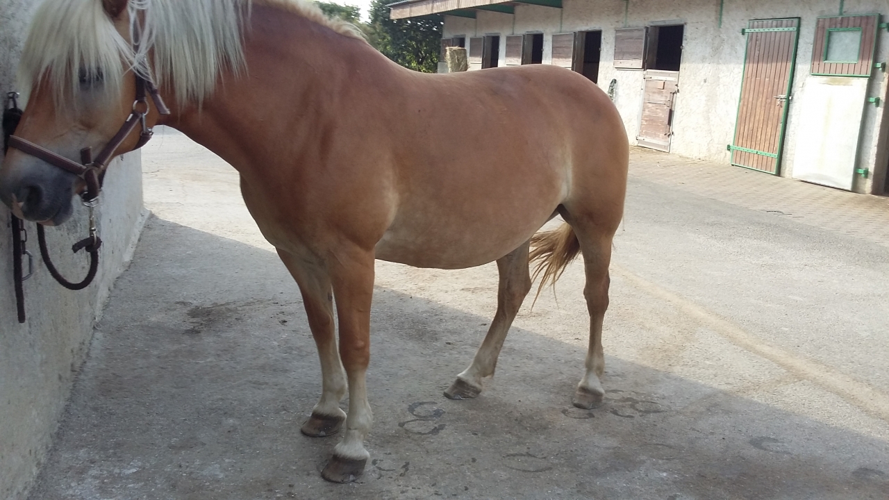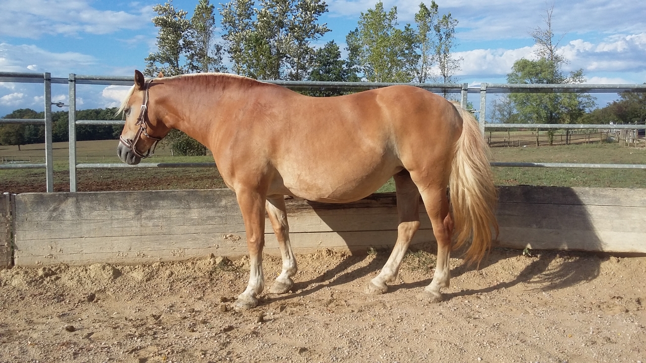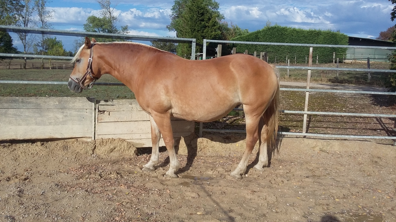 | Dire merci | Ce sont des races difficiles à juger...Un peu de rondeur est normal, mais pas trop. Il faudrait en effet une photo de profil. Mais il me semble apercevoir des réserves de graisse derrière l'épaule et au niveau du grasset, un chignon trop gros, et un ventre rond (mais ça, ça peut être un ventre d'herbe chez un cheval qui travaille peu). |