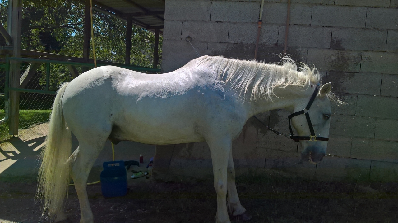 | Dire merci | Bonjour !! J'avais fait un post similaire il y a quelques années, mais plus aucune photo ne passe d'aucun des commentaires, alors j'en refais un Avec cela dit une nouvelle question existentielle.... Est ce que tous les gris TRUITENT ?? Mon poney a passé le cap pommelures et passe à la blancheur, mais je vois quelques petites taches apparaitrent qui me plaisent pas trop... Alors, est ce que tous les gris truitent avec l'âge ? Pour moi le gris évolue en : poils parsemé - pommelures - truité ? - blanc ? j'aimerais vérifier à vous !L'évolution rapide en photo : 1mois, ![]() à ses 1an il est passé par une phase très foncée, je vous la passe à 2 ans ![]() à 4 ans, les pommelures ![]() à 9 ans, le blanc ![]() |