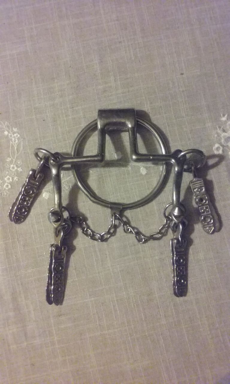| Dire merci | apparemment c'est bien un ancien mors à chameaux... Si tu tapes "mors à chameaux" dans google, tu en as une photo d'un ancien conservé à la Sté Scientifique d'Aquitaine et dans l'Encyclopédie, Diderot précise que l'anneau est passé dans le nez de l'animal. |