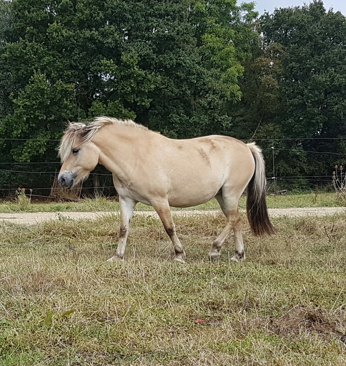| Dire merci | Salut à tous , Voilà je viens de m'inscrire sur ce forum notamment pour avoir des conseils sur comme le titre l'indique : Comment faire maigrir ma jument ? Malgré de nombreuses recherches à la questions , je voulais avoir votre avis . Voilà la photo de ma jument : C'est une Fjord de 4 ans et plutôt modèle sport. Elle n'a pas été travailler de tout l'été et elle est rester au pré car je n'avais pas d'autre choix.. Du coup quand je suis rentrer bien évidemment, je l'ai retrouvé avec un bidou de poulinière ! De début novembre à début mai , elle est en box et nourri au foin 3x par jours et rien d'autres. Et le reste de l'année au pré herbe à volonté. Je voudrais avoir votre avis : est elle vraiment grosse , grasse ? Et que doit-je travailler avec elle pour qu'elle retrouve une belle ligne ? Merci de me m'aider.. |