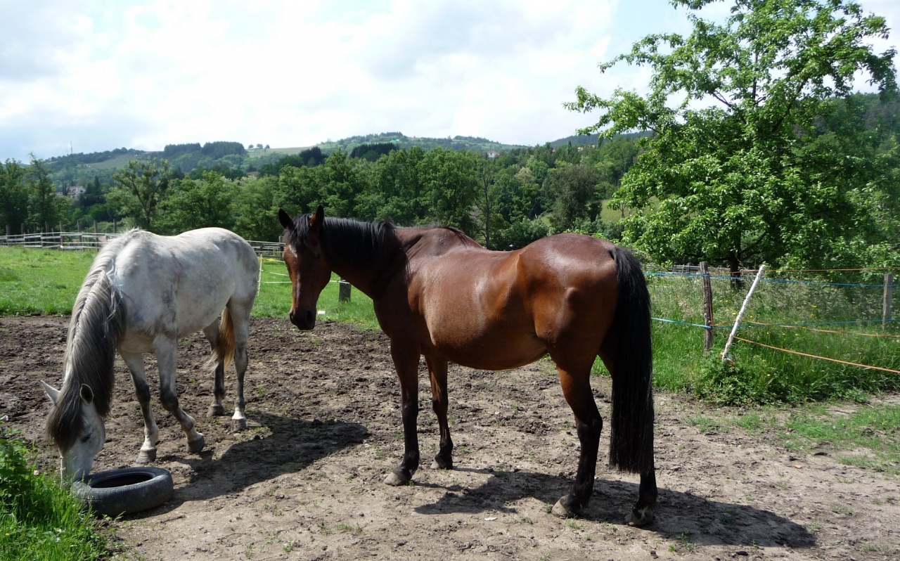 | Dire merci | Guarda, juste 14 ans, souffre d'arthrose depuis plus de 2 ans, à l'épaule droite. Elle ne peut rester sans complément faute de quoi elle boite (j'ai pu le vérifier en août alors que temps très sec). Elle est donc plus douloureuse que ce que semble l'être Llanos, et tant mieux pour lui Après plusieurs essais de différents compléments, malheureusement commencés sur mon premier cheval arthrosique lui aussi (décidément ), je lui donne en continu Harpago+ pour la douleur et Premier Flex HA pour la mobilité. Résultats plus que flagrants avec l'un comme avec l'autre. Elle est beaucoup beaucoup mieux avec. Et je continue à la monter, sur conseils véto, en l'écoutant, c'est à dire que j'adapte l'allure et les allures à sa condition du jour. Pour ce qui est de couvrir, je ne saurais être de bon conseil ; les conditions météo dans le Sud-Ouest sont loin d'être celles d'IDF |