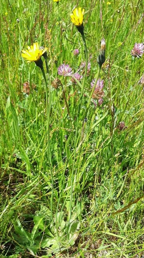| Dire merci | ![]() Quelqu'un connaît-il cette proche cousine de la porcelle enracinée ? ![]() J'avais pensé à la porcelle tachée ou tachetée dite maculata, pourtant très rare... Caractéristiques : rosette de feuilles velues dentées plaquées au sol mais présentant parfois des taches brunes sur le dessus, fleurs jaunes avec brun rouge dessous mais pas plus larges que 3 cm et pouvant couvrir une tige se ramifiant 6 fois, tige nue à écailles espacées mais creuse dans la moitié supérieure et sillonnée, avec parfois une ou deux feuilles en bas, racine principale pivotante parfois accompagnée de racines plus fines difficile à arracher mais ne semblant pas se multiplier latéralement ; sur prairie séchante, au soleil, sol acide à neutre. Taille très variable allant jusqu'à 80 cm pour une rosette jusqu'à 30-40 cm Mes chevaux consomment les fleurs. Ne semblent pas accros. La plante est fortement présente. Sinon je pense avoir bizarrement quelques plants de porcelle à soies courtes, pourtant référencée seulement dans le sud est... |
