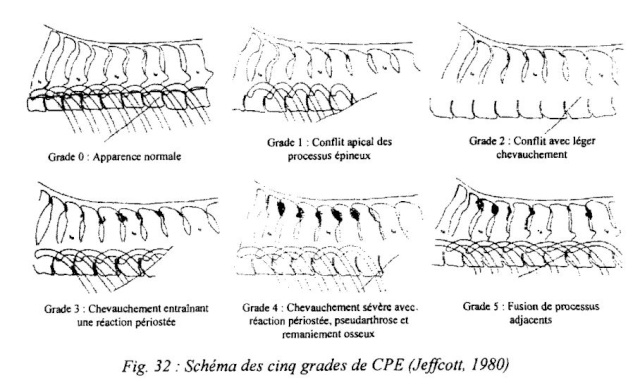 DéconnectéDire merci | ben au moins, tu sais... voici un schéma (pas très lisible, lol) avec les différents stades. En fait c'est un chevauchement (les vertèbres se touchent) plus ou moins important ![]() |