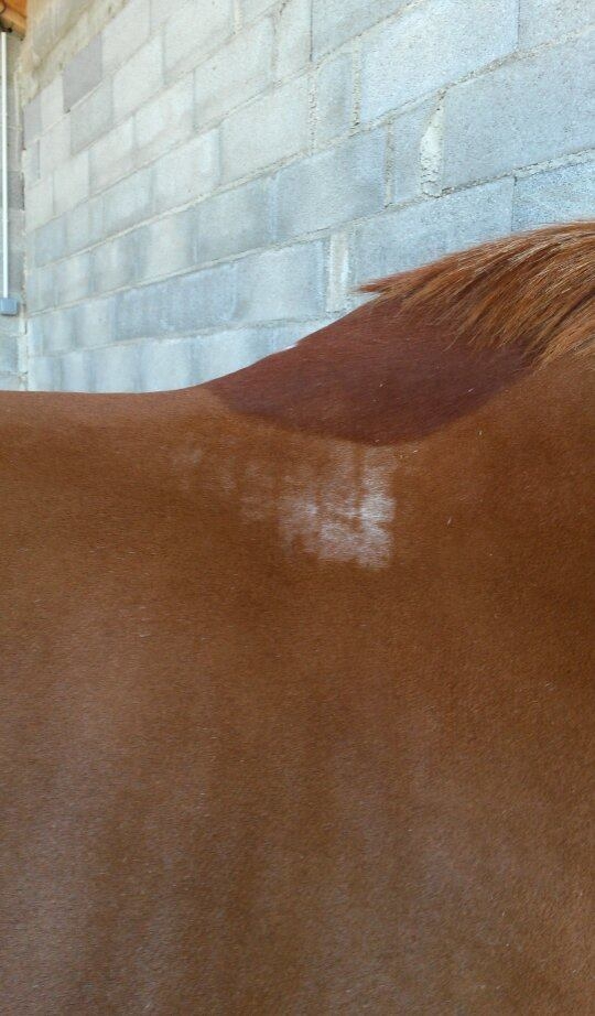 | Dire merci | Si la jument a eu des écarts de poids/masse musculaire ca a pu provoquer ca Oui c'est une possibilité aussi Ca peut aussi être des restes de l'ancienne les poils blancs ca met plusieurs mois à sortir. Non déjà tondue avec l'ancienne selle et aucunes traces nul part, le seul soucis de l'ancienne selle c'est pas assez étroite au niveau de l'arcade, garrot et colonne pas dégagés. Ca peut aussi être dû à ce qui est utilisé sous la selle Juste un tapis Lemieux (c'est pas sur internet de toute façon qu'on peut seller un cheval) donc laisse le temps à ton SF de te donner un avis éclairé. Je suis d'accord mais je suis en mode un problème résolu et en voilà un autre..., j'ai pas un budget de fou alors entre les séances avec la SF et les selles voilà quoi.... |