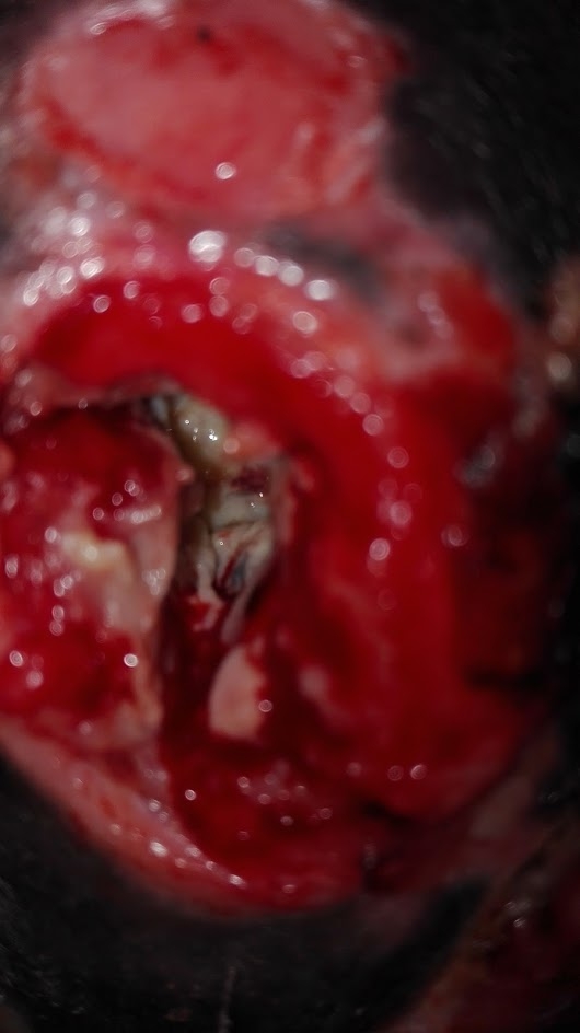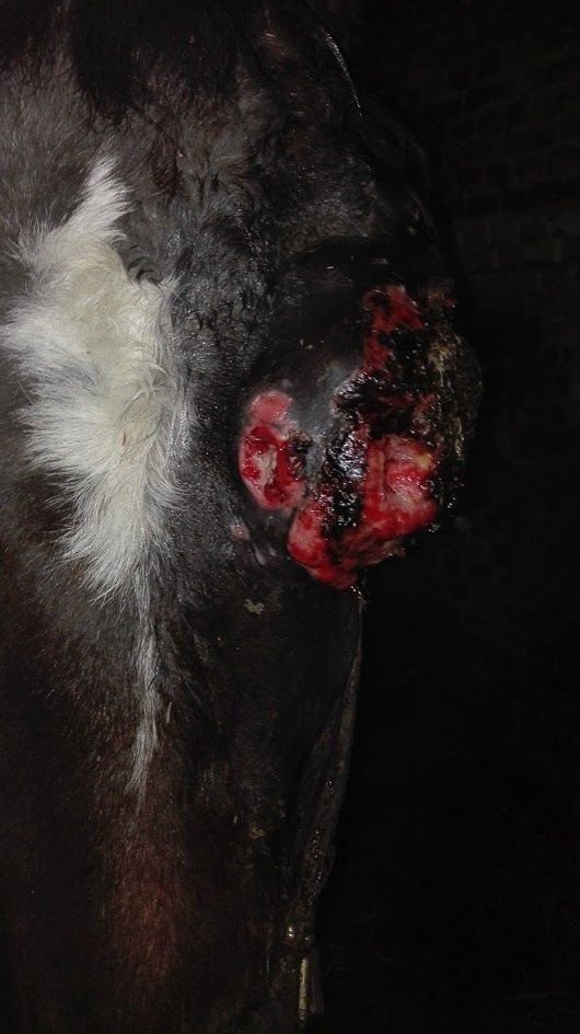 | Dire merci | Avec un compressif, sauf si trouble de la coag, la jument ne se videra pas de son sang. Au pire quelques petits vaisseaux a suturer/ cautériser. Mais bon avec l œil en dessous je comprends vos réticences.. |