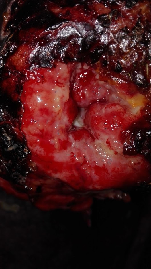 En ligneDire merci | elle a toute une série de sarcoïdes à l'intérieur de la cuisse et au niveau des mamelles (sarcoïdes tout secs qui ne posent aucun problème) et l'emplacement est quand même typique. 99,9% de 'chances' que ce soit un sarcoïde (ou tout truc assimilé) qui a mal tourné |