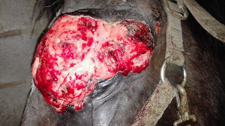 En ligneDire merci | 2 heures d'opération, que du tissus fibreux et des petites poches de pus. La tumeur aurait démarré de la paupière supérieure. Jument super brave et super courageuse. Je vais la surveiller comme le lait sur le feu ... on refait le point dans une semaine. ça va être une course contre la montre entre la tumeur et le bistouri ... si on arrive à maitriser la tumeur on devra énucléer pcq il faudra enlever la paupière supérieure qui est le centre névralgique de tout le bordel autour ... Je suis épuisée de stress ... ![]() ![]() |