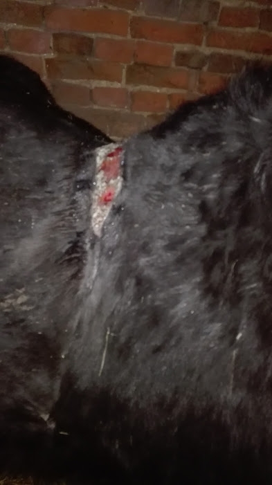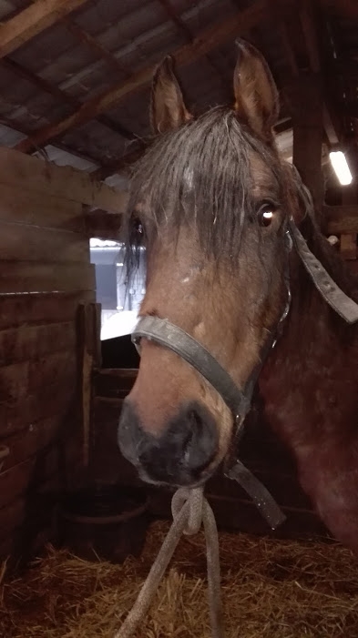 DéconnectéDire merci | Miko ? celui plein de trous ? Je dois avouer qu'avec mes soucis de Licorne et les 2 avec leur carcinôme j'ai laissé la plaie s'endormir. Il a été inspecté par la véto quand elle est venu pour l'eutha qui a trouvé les progrès formidables mais moi je vois bien que la plaie s'est endormie et se cicatrise bien moins vite que quand j'étais active dessus à 100% (si vous voulez je vous ferai une photo et plaie endormie). bien sûr ça ne pisse plus le pus, ça ne suinte même plus, c'est devenu une jolie croute rose c'est tout ... mais bon on a dit qu'on allait en refaire un joli poney tout noir on va donc faire en sorte que ... Par contre les cicatrices, même sous le poil noir se sentent bien et sont bien dures, ça ne se voit pas sur photo car c'est quasi plat, perdu dans le poil mais on sent sous les doigts (un peu moins d'1cm de large mais juste situé au passage de selle/sangle, selette) donc il restera, à vie un poney de compagnie, j'ai du mal à imaginer qu'un frottement puisse être confortable pour lui (sinon néfaste). Prochaine étape prévue dans pas longtemps: la castration, pcq maintenant qu'il va bien il est (re)devenu terriblement étalon et au printemps ça va être carnaval ici ...(avec moi toujours pas de souci il a été très bien élevé, à grands coups de baffes sûrement mais au moins hyper facile à manipuler) |