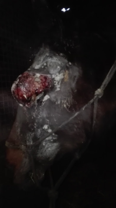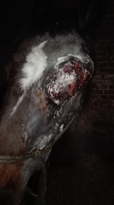 DéconnectéDire merci | merci pour tous vos bons voeux. A vous aussi tout le meilleur du monde ... j'ai eu énormément de boulot au bureau ces derniers temps et ça n'ira mieux que d'ici la fin de la semaine (et de vacances scolaires belges) j'ai donc soigné bcp dans le noir et aujourd'hui on en est au 3e jour de brouillard givrant (avec un peu de neige) ce qui va rendre la qualités des photos pas top. En plus j'ai encore 700kg de paille/foin à mettre à l'abri à la brouette (comme toutes les semaines) mon empire pour un tracteur et des bâtiments capables de rentrer et stocker de gros ballots ... ah oui c'est vrai je n'ai pas d'empire .... :-) merci encore à tous ceux qui ont envoyé des paquets cadeau et/ou des $$$. Les $$$ sont mis dans une cagnotte pour payer la double opération (et les produits de soins indispensables en attendant) et le contenu des paquets est utilisé selon les besoins. J'ai de quoi payer les opérations si pas de complication et 5 jours de traitement antibio derrière (et encore de la peni, pas de l'excenel ou un truc comme ça). Si ça merde on verra en fonction de l'ampleur des dégâts ... l'euthanasie des chevaux (autrement dit on ne les réveille pas de leur anesthésie générale) étant de toute façon l'épée de Damoclès qui nous pend à tous (eux et moi) au-dessus de la tête. Entre temps ils profitent de la bouffe, du confort d'un box paillé pour dormir la nuit et de la cour de récréation avec les copains la journée ... c'est déjà ça de pris. Je ferai des photos tout à l'heure si c'est possible |