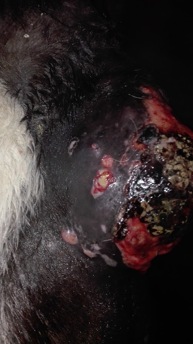 DéconnectéDire merci | Ketchup avant nettoyage ça donne ça ![]() ![]() après nettoyage ![]() il y a plein de mini abcès qui pètent ou ont pété tout autour, dès que j'en vide un , un autre se met juste à côté ![]() mais il y a une grosse merde, un 'trou' qui semble assez profond et surtout qui semble faire très mal. J'ai méché comme j'ai pu, ça pue ... c'est le 'trou noir' entre le pus qui coule (encore un mini abcès qui a pété et ce qui reste de l'oeil) ![]() j'ai aspergé l'oeil et le 'trou noir' de peni puis mis du flamigel sur la 'plaie' et couvert d'une compresse, on verra si ça tient. ![]() |