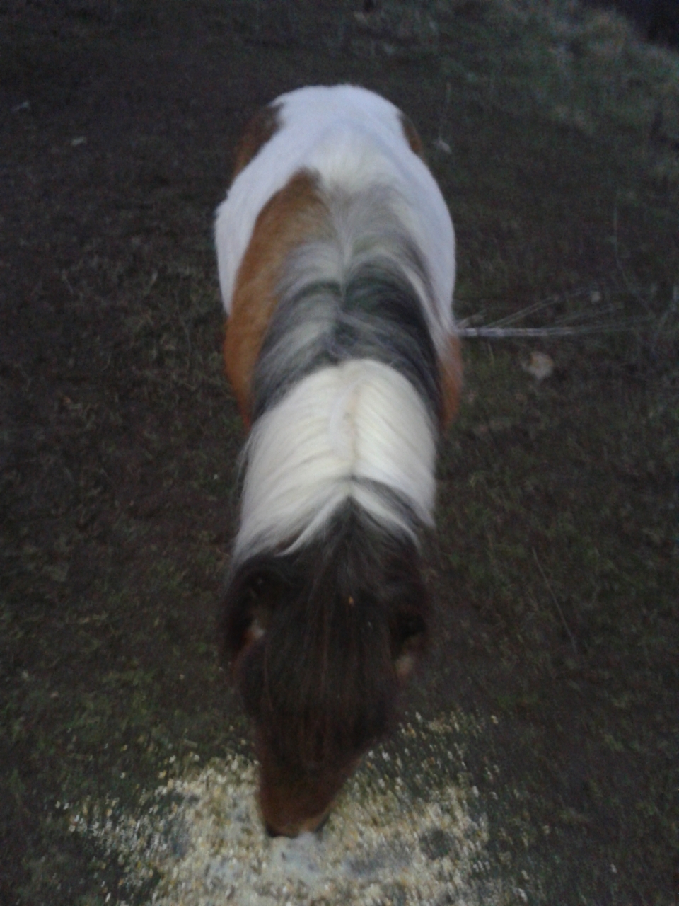 | Dire merci | Pili Là, je n'ai pas de photos... Ben, que ce soit devant & au fond, il n'a plus trop de dents... Pour un shet de morphologie large, il est trop maigre... on sent bien les côtes sous ses poils épais... C'est pour çà qu'il y a quelques temps, j'ai demander des grains à ses proprios ( qui, malgré leur bonne volonté, n'ont pas du tout l'habitude d'avoir des vieux sans dents et, donc n'ont pas penser qu'il pouvait avoir des besoins spécifiques... ) Côté herbe, il grappille bien, mais c'est pas top... C'est aussi pour çà que j'ai commencer à le complémenter avec les grains... Je l'ai toujours connu à l'herbe toute l'année avec un bon poids jusqu'à cet automne... Là, il vieillit vraiment... Pas de complément en foin car il est dans un parc bien enherbé de plusieurs hectares avec mon cheval retraité & " rustique ", il y a largement assez pour tous les deux... Mais je surveille, et donnerais du foin si nécessaire, mais, çà m'étonnerai, je suis aller vérifier l'herbe, il y en a encore pas mal... Il mange toute la journée et, je l'ai surveillé, il arrive, je ne sais comment à encore "arracher" l'herbe, même si ce n'est pas top, je pence que c'est suffisant pour son transit, mais pas pour le nourrir correctement, du coups, il est maigre... Il a un peut repris depuis que je lui donne des grains ( sa croupe à repris une forme "ronde" même si ce n'est pas encore le top, c'est pas trop mal...), mais j'aimerais lui donner plus de grains, les grands froid qui arrivent... Mais je n'ose pas lui augmenter la dose, je crains d'en donner trop... Actuellement, il est à 1 litre par repas ( soit 2 litres / jours ) Et je ne vais pas exiger des proprios de lui acheter du grain spécial séniors... Je le nourrit, mais ce n'est pas mon shet... Là il a orge / maïs / granulés loisirs à part égales. Je ne pourrais pas faire plus, à part augmenter la quantité de ses rations si c'est possible de lui donner + d'1 litre par repas... Message édité le 31/12/16 à 15:42 |