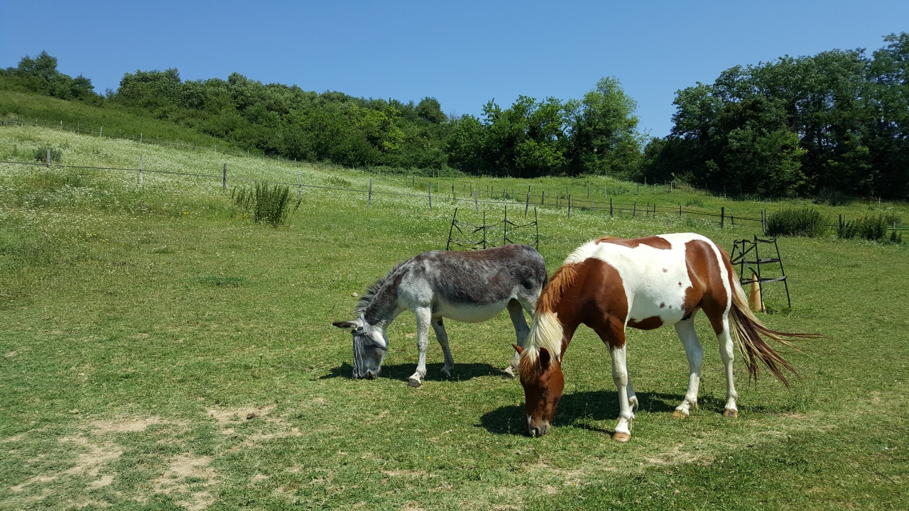 DéconnectéDire merci | oui en effet je les ai eu mais en plus d'être un pigeon je suis naïve. .. que de qualités pour moi ! vous allez me dire... elle m'a soutenu que c'était une erreur dans les papiers... je me suis dit que je verrai avec mon véto. il est au pré, foin à volonté, complémenté matin et soir et il a une gentille copine qu'il chahute pas mal. |