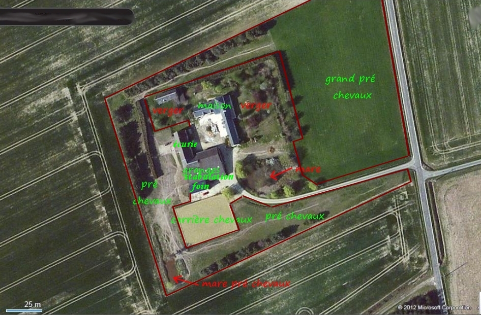 | Dire merci | En fait on a acheté une ruine au départ mais ce qui m'a retenu à la visite c'était justement les possibilités , tout à été fait en fonction des chevaux et surtout de notre mode de vie avec eux : une stabu donnant sur les prés, des box au cas où, une carrière, le foin à portée etc ... Quand on a les chevaux à la maison, ça demande un gros investissement de temps, autant le rendre agréable au quotidien Il faut vraiment anticiper, le travail de sophieshop sur les plans de Kat est vraiment top pour ça !! là on voit les 4 ha de prés à foin en plus, le fumier est stocké à l'angle qui est coupé sur la photo, au croisement route/chemin Et sinon, pour la double entrée de l'écurie, quand on a un papy bien filou, il faut savoir que corde de fermeture ou pas, s'il décide d'aller dans le jardin plutôt que dans le pré après sa ration supplémentaire à part des autres (je le mets au box pour qu'ils ne viennent pas l'embêter et lui manger sa brick) rien ne l'arrête C'est aussi pour ça que les clôtures sont en bois, pas un fil ne l'arrête ![]() vidéo prise tout à l'heure : |