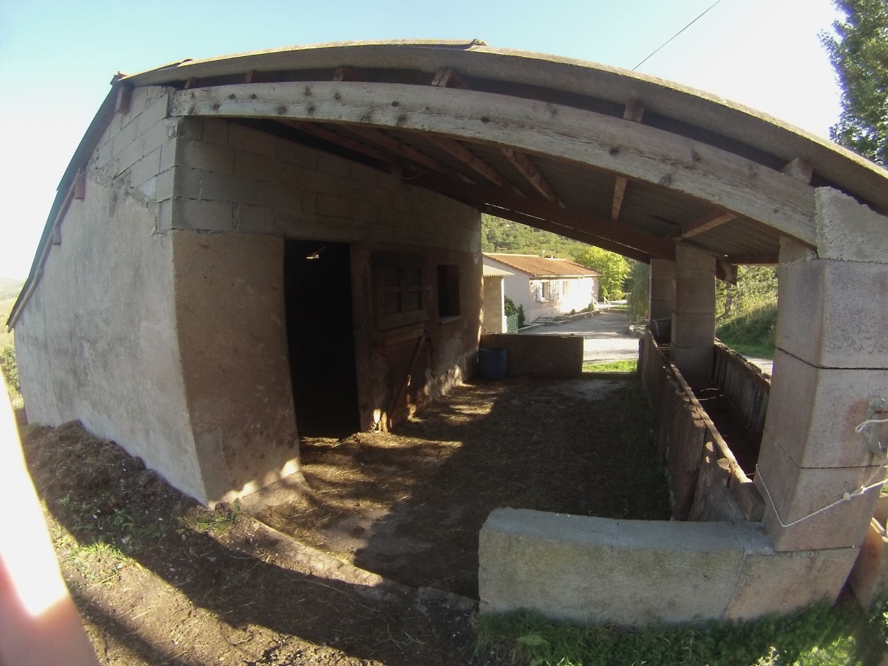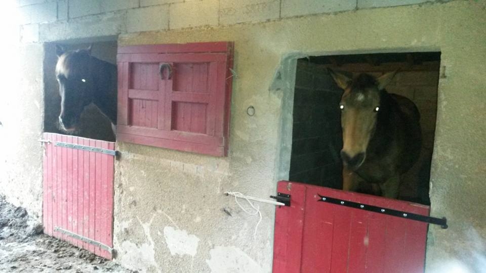 | Dire merci | Donc il y a trois ans on achète la maison et on rapatrie mon cheval à la maison, et on lui achète une copine, c'était le but ultiiime ! La maison est en fait constituée de deux maisons, une au rez de chaussée ou vivent mes parents (désormais ma maman toute seule, nous avons perdu mon papa moins d'un an après avoir emménagé), et en dessous, semi enterré mon appart ou je vis avec mon copain. je précise car ça facilite grandement la logistique : je peux partir qques jours ma maman s'occupe des chevaux et lorsqu'elle part on garde la maison et le chat... Bref l'ancien proprio avait des chevaux aussi...mais je crois qu'il aurait été préférable de repartir de zéro vue la conception de base... mais bon il y avait déjà un abri en dur et un hangar ... dans l'abri en dur une dalle béton, l'abri donne sur un grand box très sombre mais avec un sol en terre battue (box, trés sombre, fermé sur les 4 côté et terre battue...en gros ça sèche jamais...top pour les pieds des chevaux :'( ) bref ça donnait ça : le hangar ![]() le hangar qui donne sur une petite remise à foin ![]() l'abri avec la dalle (dsl pour l'effet bulle de la go pro, en plus ça agrandi c'est faux ! lol) ![]() le box .Donc j'ai commencé par refaire un paddock d'hiver attenant à l'abri, il a une surface de 1250 m², avec des piquets bois, trois rang de fils, et un électrificateur sur secteur. Astuce N°1 : protéger l'electrificateur de la pluie, humidité...donc on le fixe dans la remise à foin, dans une boite à lettre. Le paddock d'hiver est la résidence principale des chevaux de Novembre à Mars, le reste de l'année ils y ont accès libre depuis leur pré pour se mettre à l'ombre dans l'abri, faire la sieste...et y sont par contre enfermé la nuit. ça me permet de préserver les prés l'hiver car je n'ai pas une grande surface. donc pour faire clair avec le paddock visible depuis le ciel : ![]() donc en Jaune : notre terrain global en orange : pré prêté par mon voisin mais jusqu'à ?? en pointillé mes clôtures pour faire tourner les prés en rouge : paddock d'hiver + abri des chevaux en bleu en bas : ma carrière en herbe, praticable que l'été ou presque la croix bleu en haut : la source qui me permet de donner à boire, doucher... parfois à sec l'été ou gelée l'hiver donc on complète avec des récupérateurs d'eau un peu partout autour de la maison. |