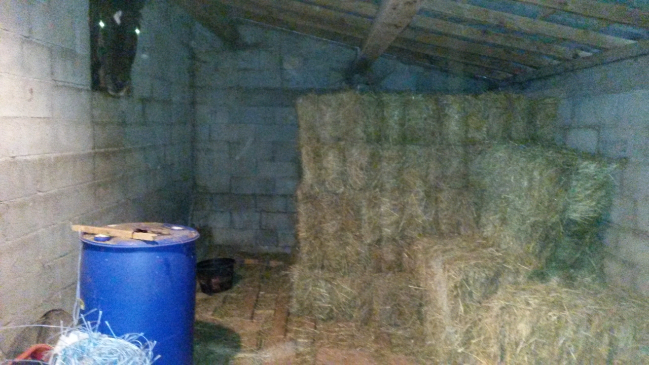 | Dire merci | Le HANGAR ET L'AIRE DE PANSAGE : Notre premier gros boulot, fut de faire une dalle de béton dans tout le hangar, et de fermer/transformer la partie droite en sellerie / garage, et la partie gauche en aire de pansage. donc en sellerie j'ai le droit à un mur ! ( ba oui faut partager avec toute la famille lol) ça donne ça : ![]() ( y a le principal : porte selle/porte bride, porte tapis, armoire à pharmacie humain/chevaux) et dans le placard je range le nécessaire de clôture, bonbons, bandes de polo... dans la malle en plastique : les couvertures. bon il me manque maintenant des trucs pour suspendre, mais hombre veut s'acheter un fer à souder, on devrait pouvoir fixer des attaches sympa en fer à cheval ! je précise que la bouffe n'est plus stockée avec les selles, erreur à ne pas faire sinon après les souris se font un régal de grains...et de cuir ! Astuce n°2 : j'ai un chat qui dort toute les nuits dans la sellerie (et donc lui il se régal de souris! mais jamais de pbs sinon) Depuis j'ai rajouté deux tringles à rideau, une dans la sellerie pour faire sécher les couvertures (oups c'est le bazar!!) : ![]() et une dans l'aire de pansage pour faire sécher les tapis, accrocher les mask... ![]() L'aire de pansage : bon à terme je veux une fresque sur le mur (mon frère est grapheur, suffit juste d'arriver à la kidnapper plus de 2 jours! lol) 3 anneaux d'attache + 1 en extérieur : tous avec ficelle à ballot pour les tireurs au renard... bétonnée, couverte et avec la lumière : un VRAI CONFORT pour toi et les marechaux, véto, dentiste...qui sont amenés à venir bosser chez toi, crois moi à la mauvaise saison ici, ils savent très bien chez qui ils vont intervenir en fonction des installations (surtout le maréchal), donc prévoir une prise pas loin pour brancher le matos ! top pour doucher aussi, faire les soins l'hiver... moi j'y ai mis une étagère ou je stock mes brosses (dans un tiroir vide), mes cures, minéraux...mes gants, mon matos : pelle, balais....ça évite que ça traine partout et tu les as sous la main ! REMISE A FOIN : La on a décidé d'isoler le foin du sol en disposant tout sur palettes (c'est économique) et je soulève, nettoie les palettes entre deux livraisons...je rentre en moyenne 50 petits ballots de foin ![]() mon grain, orge sont stockés dans des poubelles, je rentre 50 kgs maxi d'un coup, ce qui permet de les laver, vider, régulièrement et évite les petites bestioles... Les chats siestant dans le foin la journée, les souris ne s'y aventurent pas ! Le gros plus c'est ça : ![]() la fenêtre donne directement sur un des box, trop pratique pour nourrir ! (j'ai viré le râtelier!) et puis ça étire les chevaux lol ![]() |