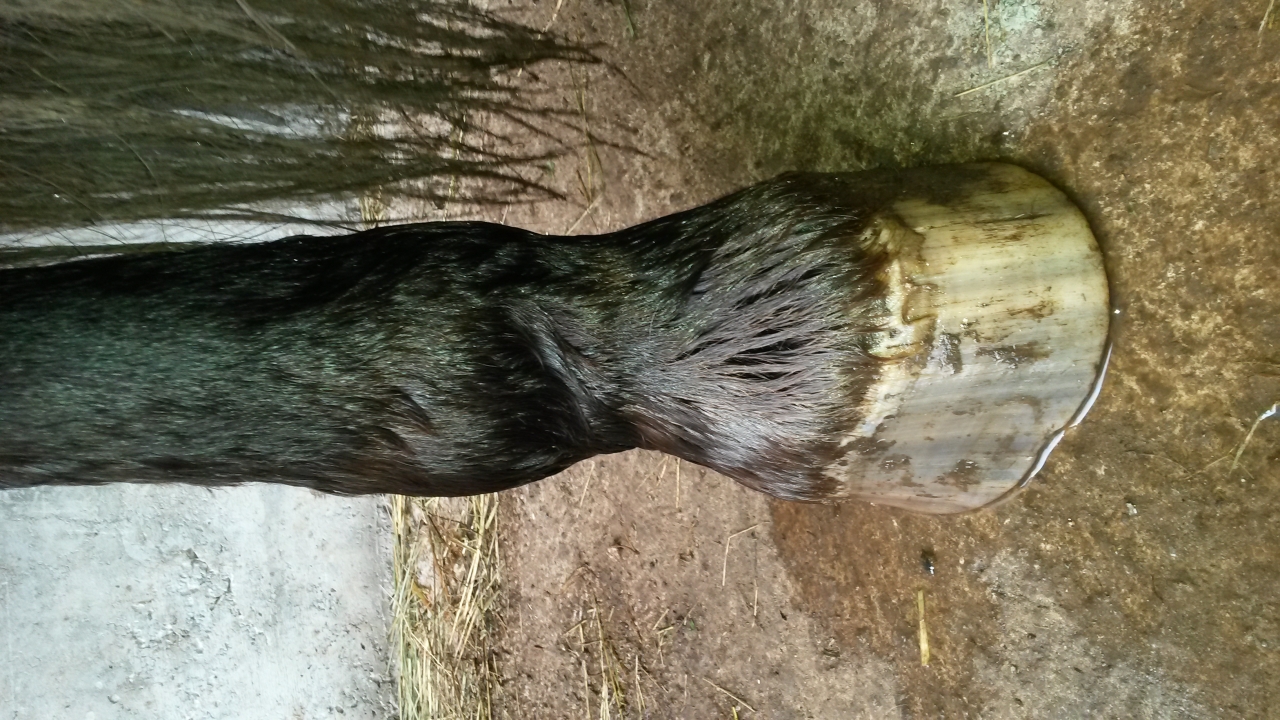 | Dire merci | Bon...une amie est passée voir... Du coup on a ressorti le cheval, douché l'argile, localisé la zone de chaleur qui ce soir était très localisée (disons un cercle de 5cm de diamètre...), aujourd'hui le cheval est resté au box tte la journée (de lui même, il a plu bcp et bcp de vents tte la journée les trois chevaux ont fait placard...) et l'engorgement était identique à ce matin... J'ai à nouveau douché et montré son pied, selon elle c'est vraiment la pourriture et la fissure inter-glomme qui pose pbs, d'ailleurs c'était bien sensible ce soir...nous avons donc re-nettoyé et longuement séché avant de mettre un peu de goudron (le terrain est tel qu'il faut imperativement proteger le pieds de l'humidité / boue/flotte du terrain...) puis cataplasme d'argile voila, comme prévu je rappelle le véto demain mais j'ai tellement d'hésitation /apprehension... goudron ou pas, liqueur de villate ou pas, risque de lésions osseuses...galère Voici quelques photos mais c'est difficile avec une seule main, un pied lourd et un cheval qui se defend un peu.. L'engorgement ![]() Le pied ![]() Ce matin avec la mèche de liqueur de villate |
