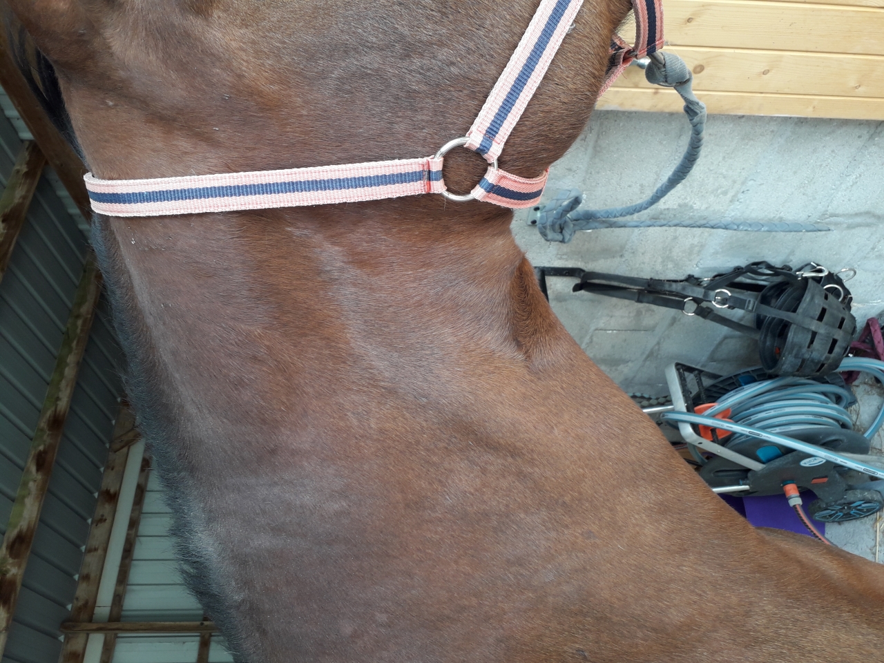 | Dire merci | Suite de l'épisode: J'ai toujours pas mon compagel je l'aurais cette après midi, en attendant je suis passée au synthol gel.L'hematome a réduit ! Par contre il y a une zone qui reste très dure sur le point d'injection et au dessus : je ne pense pas abcès mais à mon avis y aura une induration, un truc qui restera tout dur... Je réduis progressivement la dose d'equipalazone. Côté véto on refait le point en fin de semaine, on parle bien de phlebite avec les conséquences: injections impossibles de ce côté, tendances probables à l'engorgement. Côté sportif de toute façon elle était déjà en retraite pour des problèmes importants de sarcoides donc.... |
