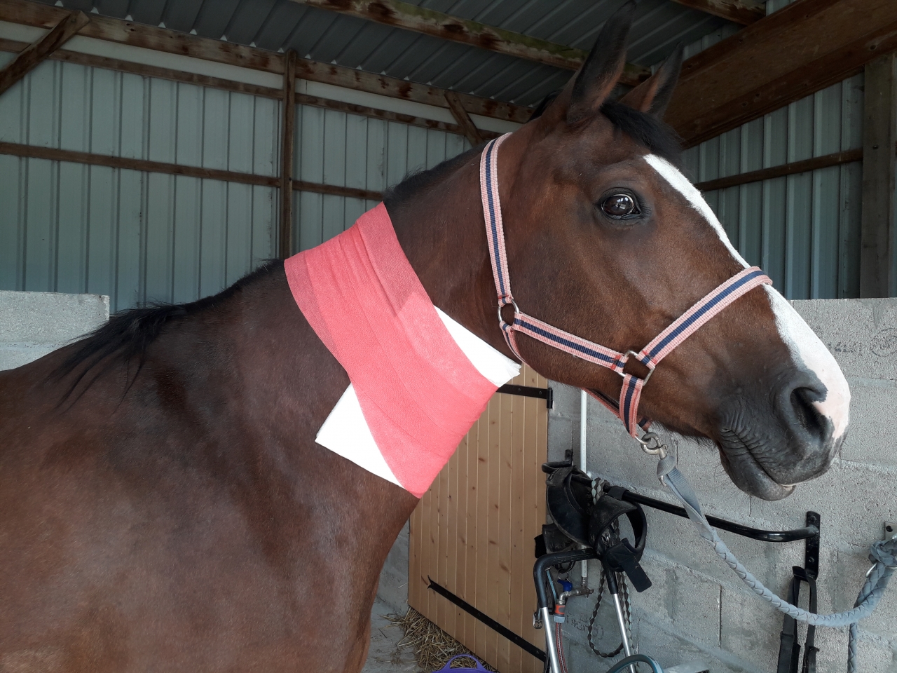 | Dire merci | Je ne sais pas si on voit bien l'ampleur du truc : cest très diffusé: normalement on devrait voir la forme de sa trachée et la gouttiere de la jugulaire, là on ne voit plus qu'un bloc d'encolure ![]() ![]() Bon forcément de travers ça aide pas à voir ![]() Puis... Oh je vais mieux : J'ai un joli pansement de fille ![]() Par contre c'est super chaud bouillant là dessous (le véto préconisait plutôt du froid : ça me rassure pas de faire chauffer !) |