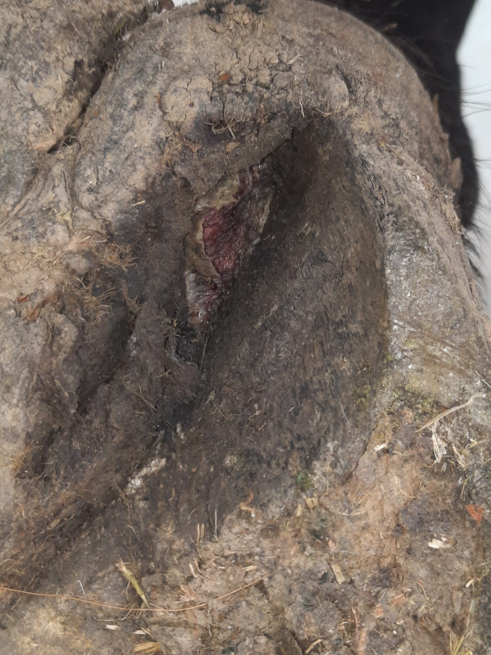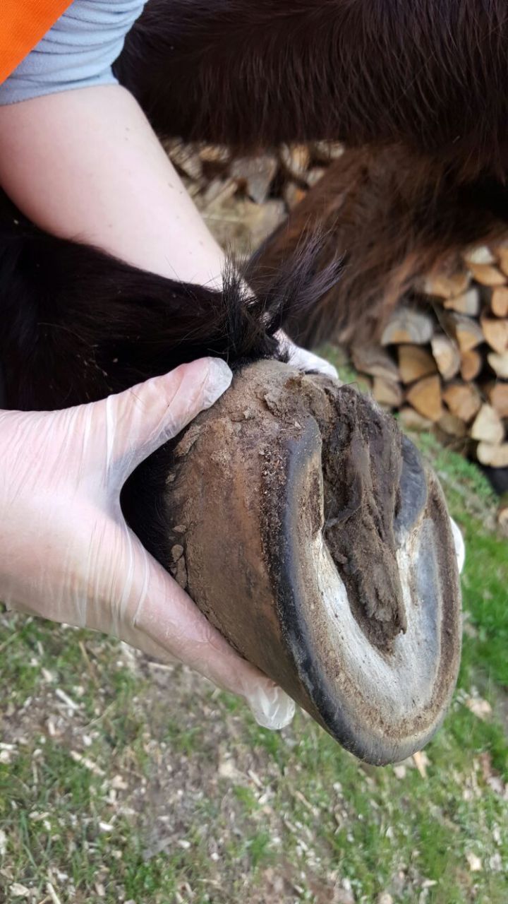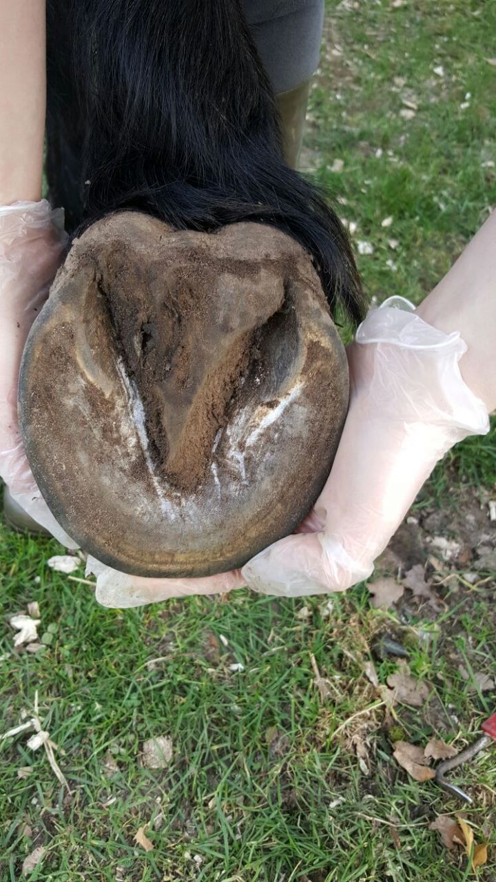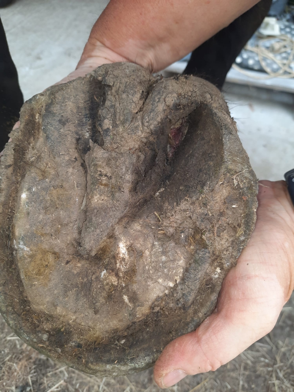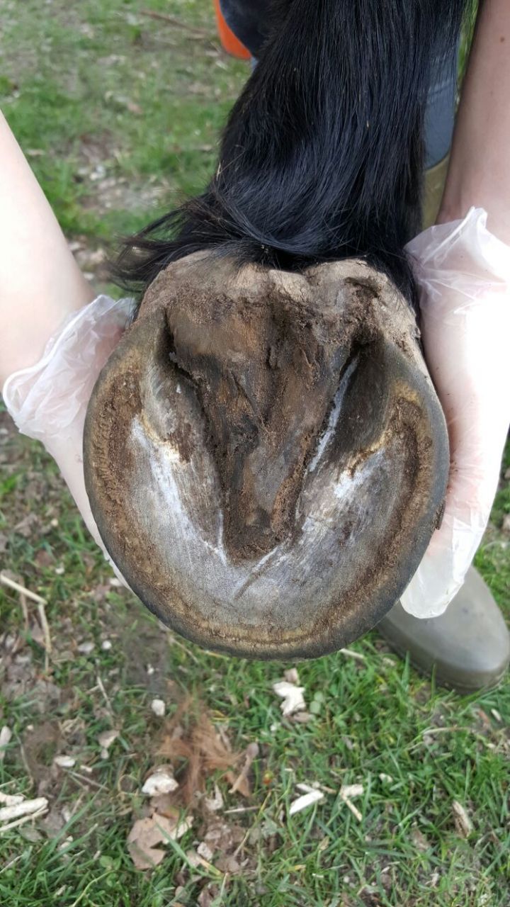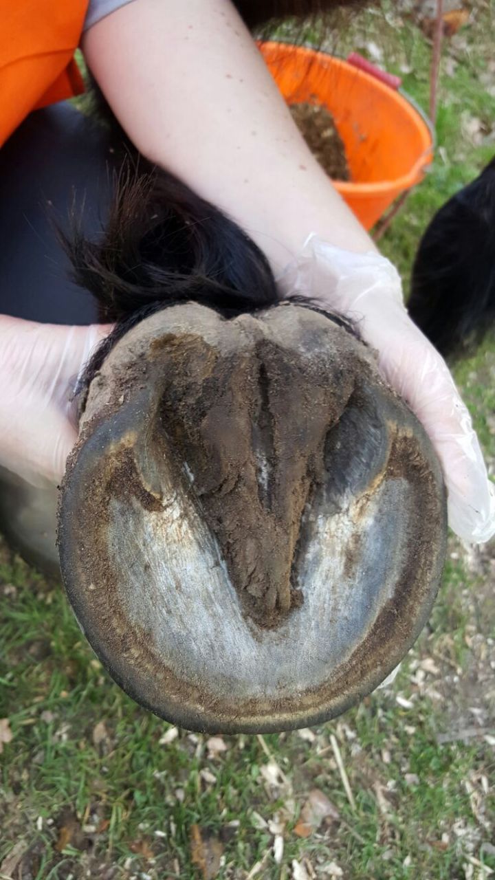| Dire merci | Le parage a 3 semaines, le cheval a une pousse de pied extrêmement rapide. C’est la plaie au fond qui m’inquiète, la veto ne sait pas ce que c’est. Une bleime est longue à se résorber ? Sachant qu'il n’a jamais boité. Un début de crapaud? Je ne trouve pas d’info sur le début de la maladie. |