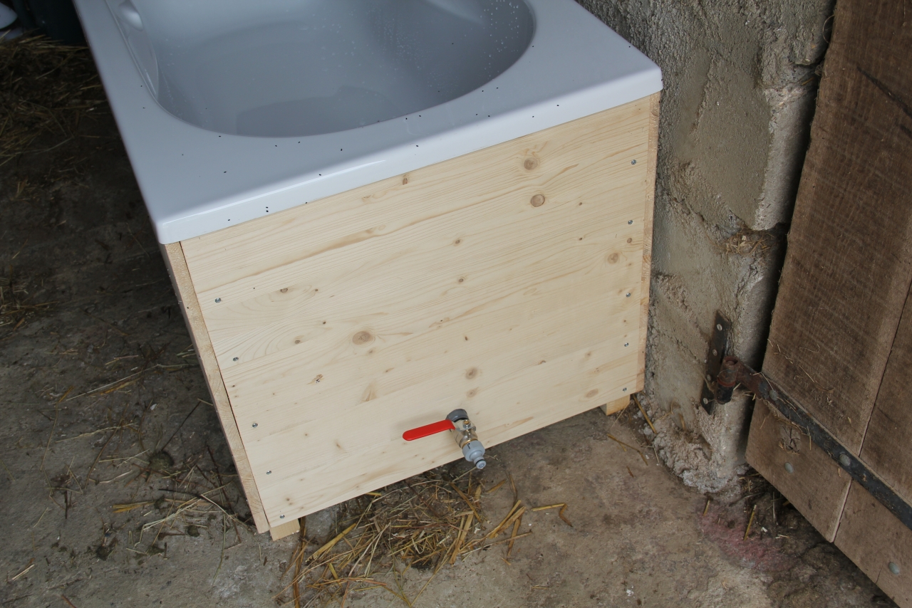 | Dire merci | veronik elle est légèrement chassée. Il faut savoir qu'ils arrivent à dormir tous les 3 couchés dans leur cabane donc elle n'est pas non plus oppressée, mais ça n'est pas elle la chef. Pourquoi une usine à gaz? Je cherche justement un moyen de me faciliter la vie car l'eau et le foin (qui ne viennent pas du même endroit) ne seront pas à proximité de mon paddock. Donc l'idée de faire un coffre deux en un me paraissait bien dans le sens où ça m'éviterait effectivement cette manipulation de foin mouillé que je ne sais comment transporter d'ailleurs. Et du coup, l'eau se serait évacuée dans le sol comme quand je rince mes bacs. Je précise que ce dispositif serait pour la belle saison uniquement: je dois (dixit la nutritionniste) les mettre au pré la journée et paddock+foin mouillé la nuit. kirikou oui c'est sur que 3 coffres ça peut être une solution. En fait je pensais faire pencher ma baignoire, voire la mettre sur roues afin que l'eau s'écoule bien. Je dois tremper 2h pour perdre les calories. Autant dire qu'en rentrant au mieux à 19h, tremper 2h ça me fait du 21h, bah du coup je voulais me simplifier la vie le soir. Et ton idée de la baignoire rejoint la mienne, c'est çe que je voudrais faire mais tout combiné: baignoire habillée d'un coffre en bois sur lequel je placerait un couvercle avec filet (comme celui que Ana et Elise avaient). |