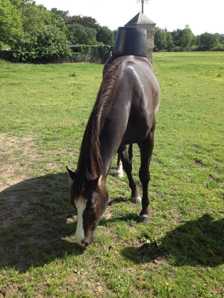 | Dire merci | Je photographierai la miss ce soir. C'est une paint horse, donc elle est assez tanquée, mais le dentiste passé la semaine dernière et qui a lui même des quarter n'a pas fait de remarque sur son poids, il m'a dit que par contre, niveau pieds, les quarters c'était pas toujours simple a gérer car petits pieds pour supporter une grosse masse. Mon autre jument a un greenguard chaque printemps, sans ça, elle est vraiment grasse, avec du gras sur la croupe, un bide énorme, ce n'est pas le cas de Dakota ou alors je suis aveuglée par l'amour que je lui porte... et quand on les voit tous les jours, on ne se rend pas forcément bien compte. Voici une photo d'il y a 3 semaines, bon on ne voit pas grand chose mais c'était juste avant le passage du maréchal... et il y a 3 semaines, il ne m'a rien dit sur son poids ... Maintenant, il a plu depuis et de l'herbe très grasse a poussé ... ![]() |
