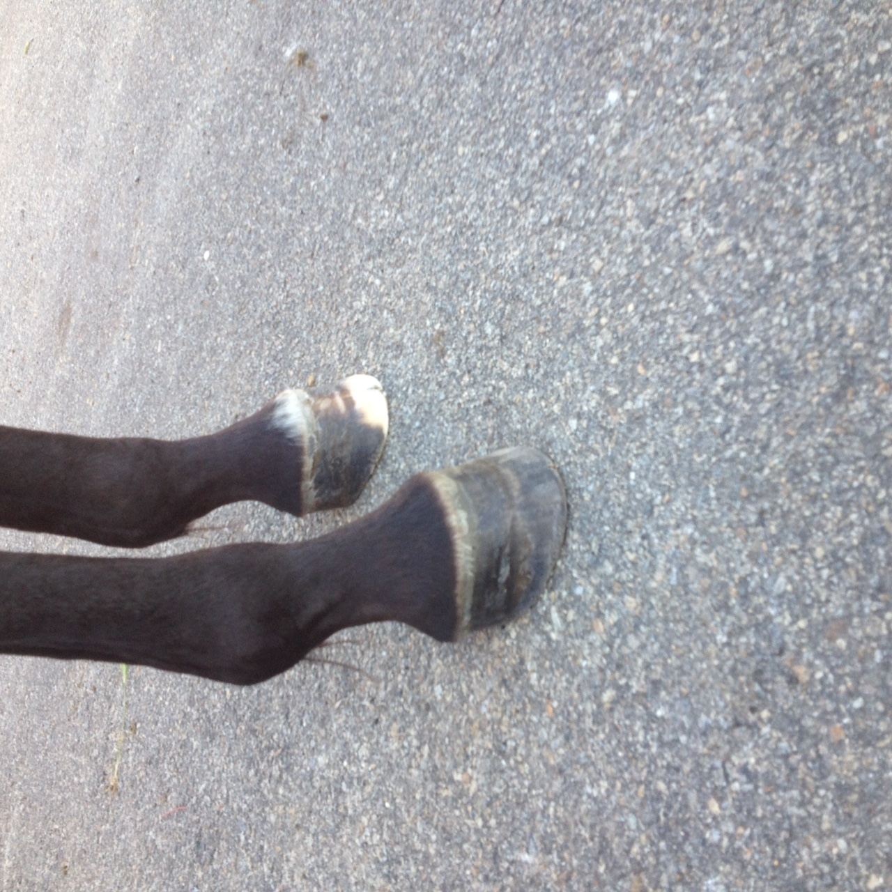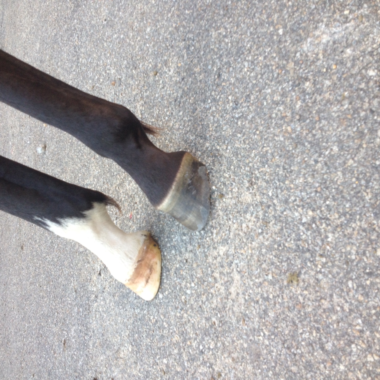 | Dire merci | Bon, le pareur est passé ce soir et je suis rassurée. Pas de dommages durables sur les pieds de la pouliche et il a fait du joli travail. Tout n'est pas réglé, il faudra du temps, mais déjà esthétiquement, c'est beaucoup mieux... le travail a duré un peu longtemps et la miss s'est un peu impatientée sur la fin. Elle semblait un peu bizarre sur ses patounes après le parage, comme si elle marchait sur des oeufs, il m'a dit que c'était l'affaire de quelques heures, le temps qu'elle s'adapte. Sinon, il doit repasser demain pour mettre du hoof stuff derrière un résidu de seime, la demoiselle a des champignons dans la ligne blanche aux antérieurs. Voici 2 petites photos, qu'en pensez-vous ? Le postérieur gauche est encore un peu long sur la paroi à gauche car il n'a pas voulu trop raper car il y a un résidu d'abcès dessous, il réajustera au fur et à mesure. ![]() ![]() Désolée je ne comprends pas pourquoi les photos ne se chargent pas dans le bon sens Prochaine étape, ostéo car apparemment, elle a une douleur dans le dos... Message édité le 14/06/17 à 22:14 |