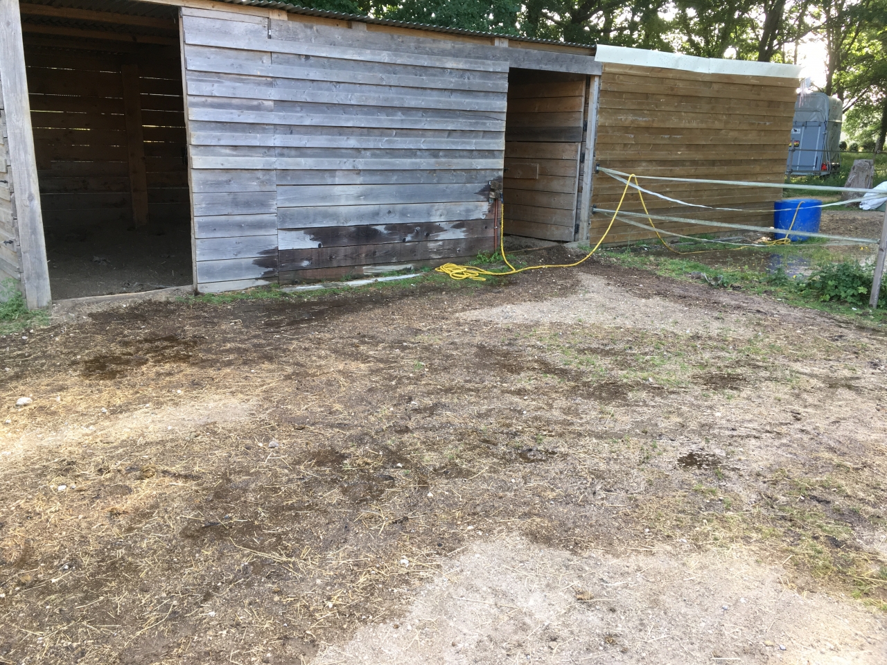 | Dire merci | alors pour préciser, ce n'est pas un abri de pâture mais vraiment une ancienne étable, construite dans une grande grange . le plafond est également le sol du fenier. Il y a une petite aération au fond et une fenêtre un peu plus grande en façade. cette stabulation fait environ 3.50m x 9m. Je n'ai pas assez de largeur pour y faire un couloir, sinon j'aurais préféré y faire 2 boxes. l'idée, c'est que mes chevaux vivent en pré/stabu (à défaut de boxes) à l'année |