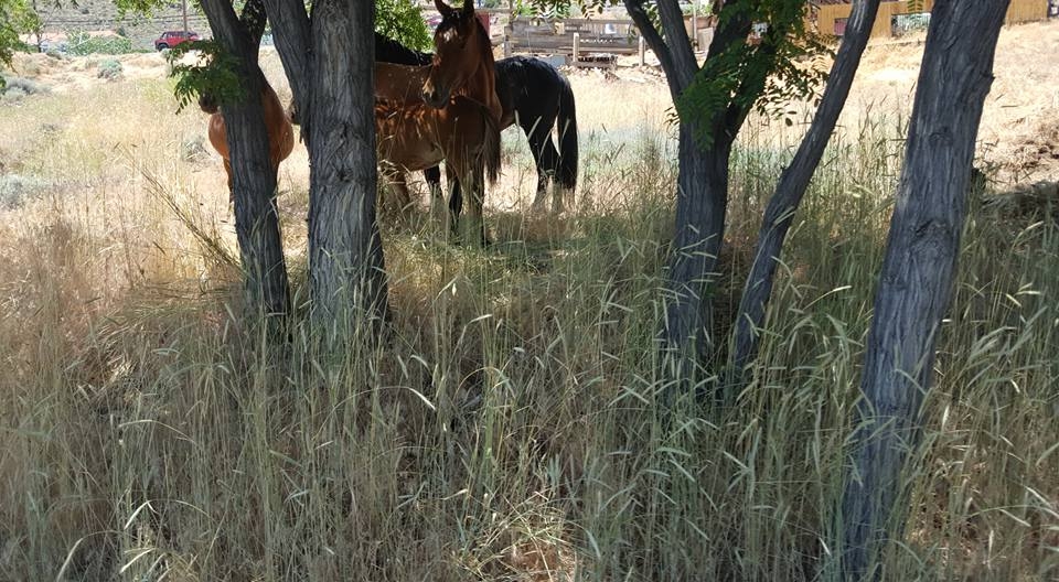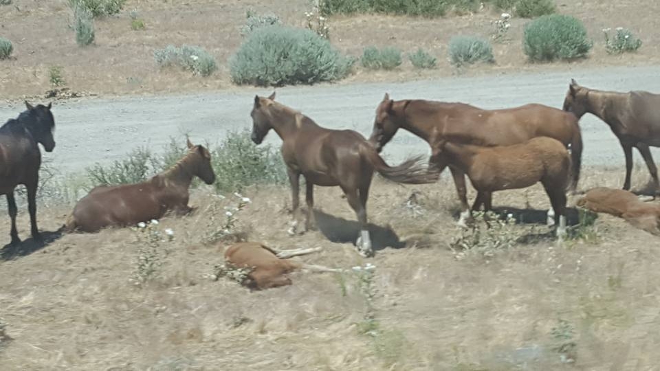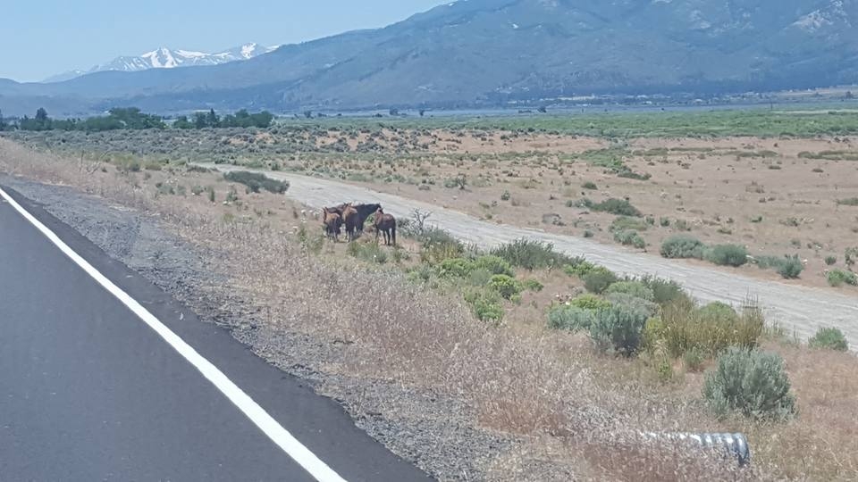 | Dire merci | De retour d'un super long weekend du 4 juillet dans le Nevada du Nord, nous avons ete accueillis des notre sortie de l'autoroute par les mustangs de Washoe Valley. Voici qq photos prises au vol, nous etions presses d'arriver puisque nous faisions le voyage avec nos chevaux et qu'il faisait tres chaud - 6h de van depuis San Francisco, arrivee a midi.![]() ![]() ![]() ![]() Du coup les mustangs faisaient la sieste sous le cagnard. Ils sont plutot gras cette annee car l'herbe a bien pousse du fait de l'hiver long et tres enneige. Il en traine frequemment une bande a cette endroit, mais cette fois il y avait au moins trois gros groupes. |