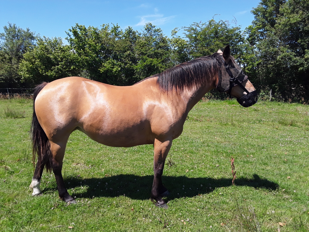| Dire merci | J'ai la blague d'avoir le mien (qui est SME) qui se tient bien que trop gros... et de regarder mon autre poney du même gabarit et mieux comprendre pourquoi ma voisine pensait que c'était une poulinière Je suis content pour le bulgare qui a son panier de voir qu'il le garde sans pour autant avoir la sangle de chanfrein, et qu'il en blesse plus au ladre, un souci de moins. . |