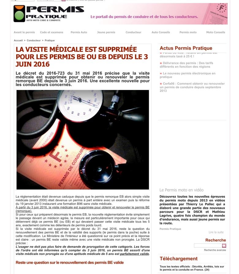 DéconnectéDire merci | Avant, la validité du permis remorque était soumis à une visite médicale périodique qui est maintenant supprimée. Sur mon permis il est donc indiqué que le permis BE est valable jusqu'en février 2017. Faut il que j'aille en préfecture pour le faire modifier de peur que les forces de police m’embête ou ça va bien comme ça? |