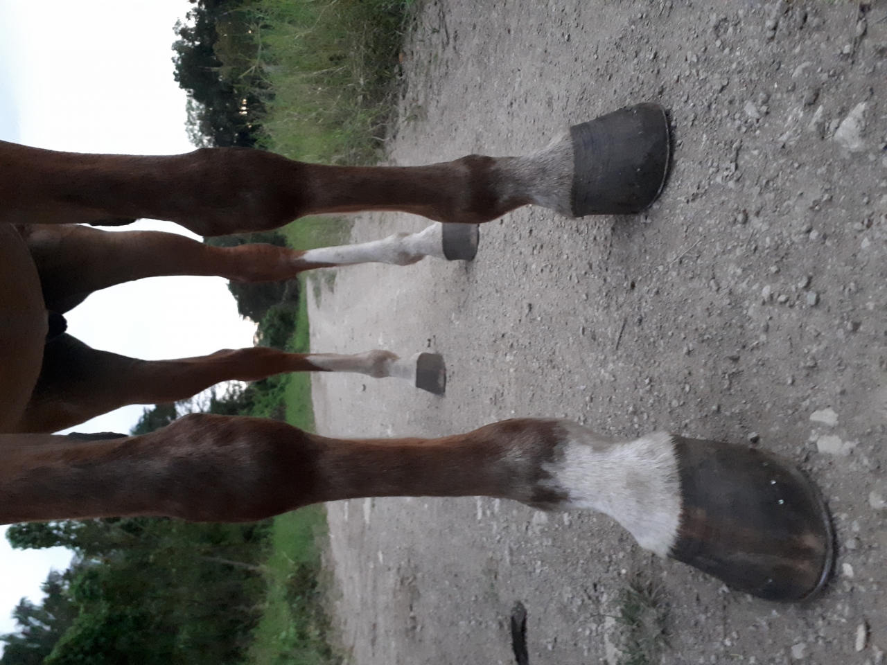 | Dire merci | Je pense qu'il y a quand même une réflexion a avoir sur l'allure des pieds, même s'il est en bout de fin de ferrure ça ne devrait pas ressembler à ça, sauf s'il a été ferré trèès long à la base, où si la ferrure date de mathusalem Peut être prendre des photos des pieds le jour de la ferrure, pour voir si c'est vraiment bien réalisé ou non |