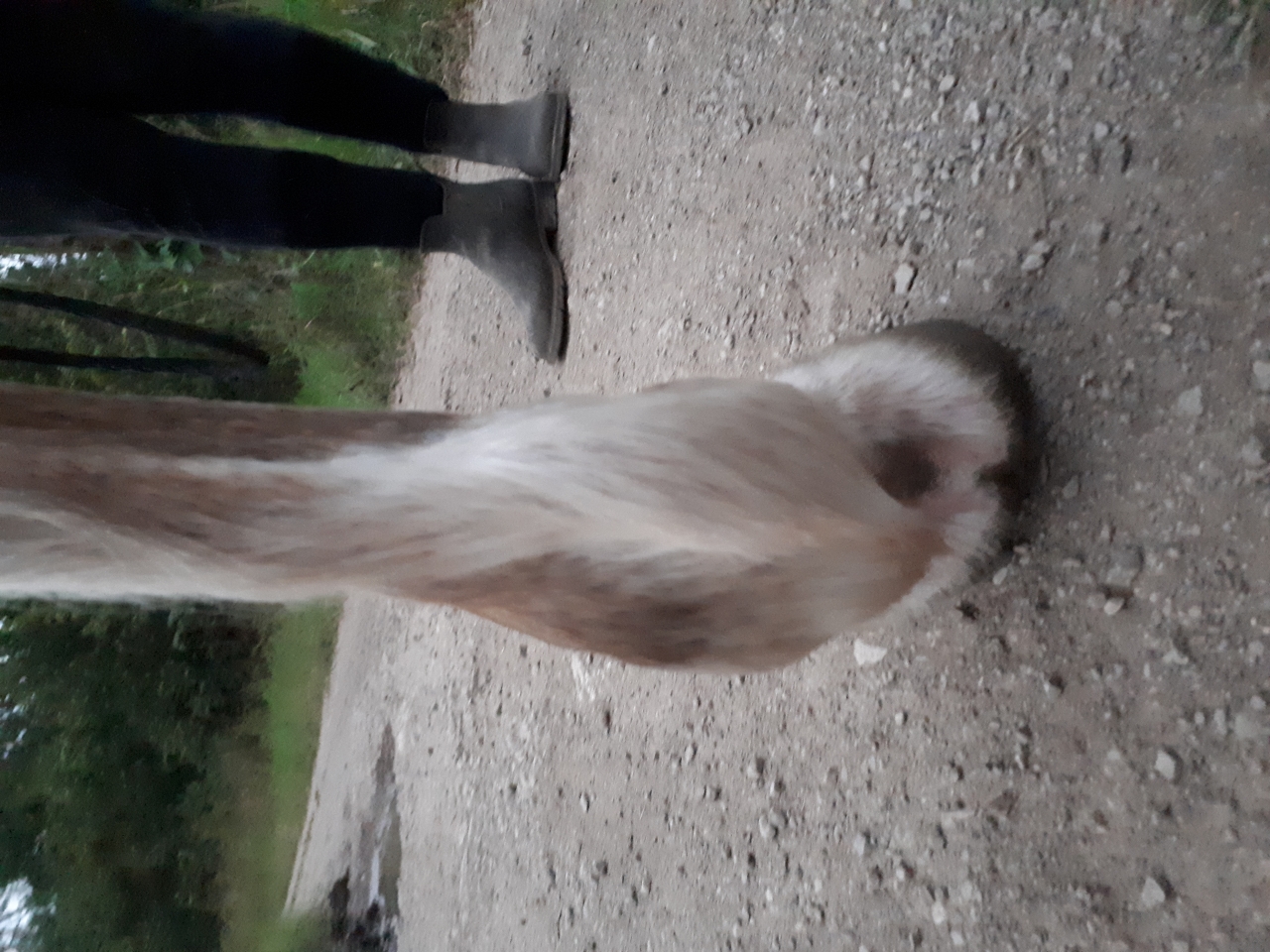 | Dire merci | Bonjour , Je viens de faire acquisition d'un cheval, tres gentil, grand beau et fort. Premières balades (trot galop) impecable Première "grosse balade" (trot galop a la plage) : boiterie légère repos pour la suite (1 mois au parc). De nouveau une grosse balade (4h au pas, juste le galop sur la plage), il est revenu en boitant fort sur le dernier kilomètre. Engorgé, chaud, douloureux. Douleur lors de la flexion du boulet. Donc ligament suspenseur du boulet atteint... Argile et HE gaultherie plusieurs jours. Ca a duré 1 semaine pour que se soit presque invisible mais il reste boitilleux aujourd'hui (ca va faire 3 semaines) et toujours cette légère douleur à la flexion... J'ai préfèré ne pas l'enfermer car c'est un cheval calme au parc et son pote aussi. J'ai peur que se soit quelque chose de grave qui m'empêche de le garder... (J'ai deja 3 retraités et d'autres qui arrive a un certain age que je me dois d'assumer) Pensez vous que se soit le galop sur la plage ? Ca pourrai etre quoi du coup ? Entorse? Autre? Il a vu l'osteo mais elle préfère ne pas agir de peur d'aggraver la chose. Second avis impossible car pas dautres osteopathe animalier dans le pays et radio ecographie et tout le toin toin impossible (je ne vis pas en France) Vous en pensez quoi...? Je vous met des photos dhier, ce nest pas "propre" mais l'autre jambe est casi similaire (aplomb pas top non plus jai oublié de préciser) ![]() ![]() ![]() |