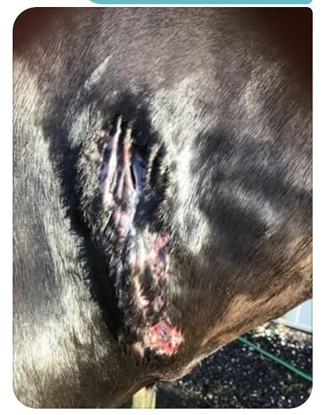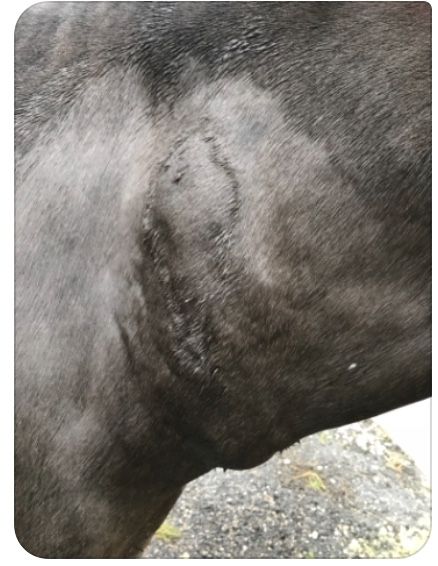 | Dire merci | Ba écoute pili je pense que si mon veto veux lui retirer il va m’en dire de l’amener dans sa clinique il a bloque opératoire / box / manège etc Ont a eu le cas d’un de mes pensionnaire l’annee Dernière qui a eu une petite plaie au jarret qui c’est transfrormer malgré les soin il a donc couper toute la partie de peau et il la fait sous anesthésie général |