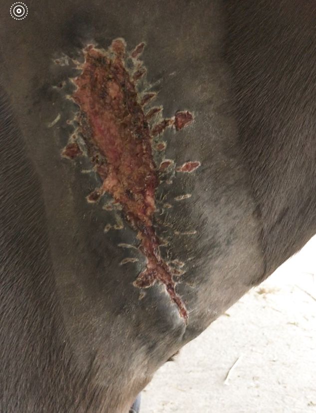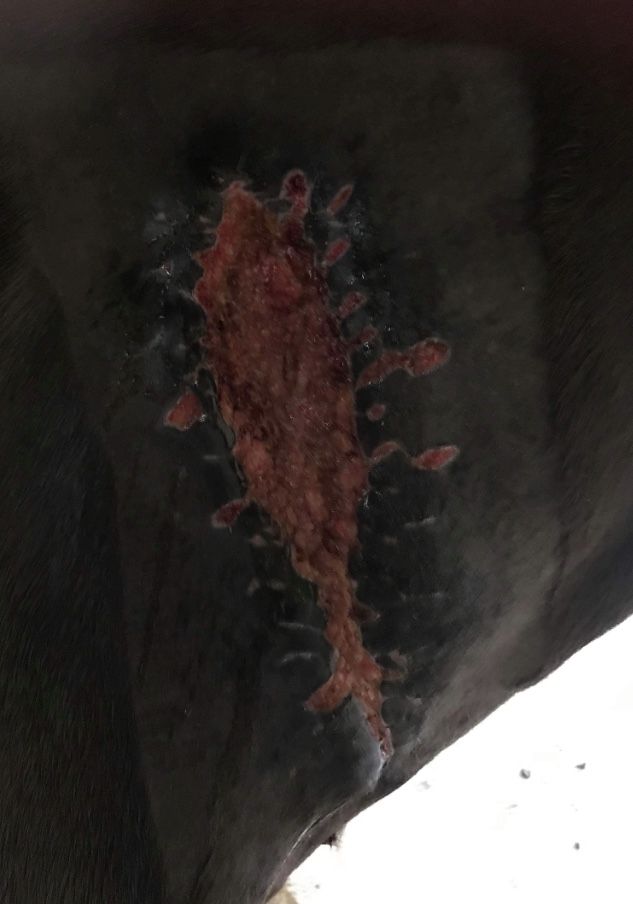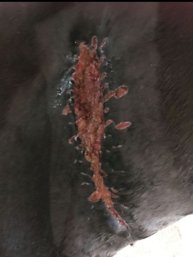 | Dire merci | .. Les vétos pour faire tenir un pansement sur ce genre de plaie ils mettent des points ... Je n’en mets pas.... et un Vtrap est amplement suffisant vu la situation. |