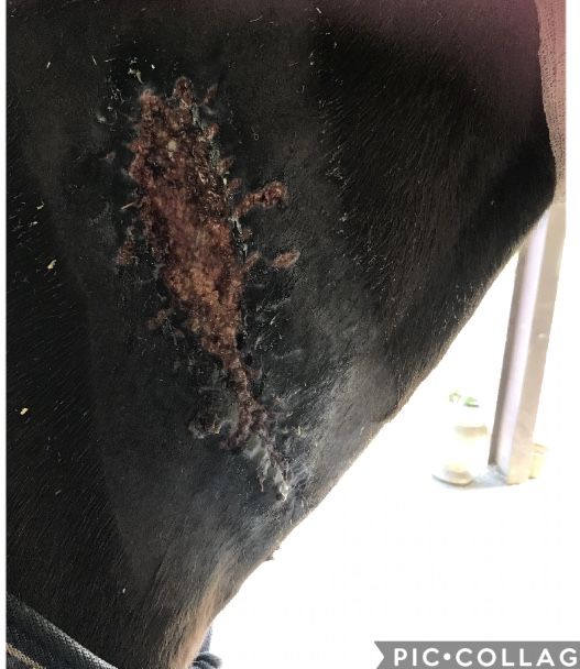 | Dire merci | Honnêtement je pense juste que c’est une inflammation avec la cicatrisation c’est pas évident juste avec des photos le rendu n’est pas le même en réel, la c’est vrai que sa donne l’impression d’une enorme masse gonflée mais non Cela dépend aussi de la position de la tête de mon cheval quand je prend les photos Faire un bandage jsui ok et j’aimerais réussir , c’est ce que j’ai essayer la nuit précédente , mais ce matin tout le truc avais bouger et là plaie était à l’air si vous avez des idées de ce que je peux prendre pour que sa tienne et une façon de faire je veu bien |