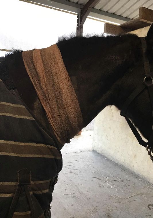 | Dire merci | Simple idée : pourquoi ne pas tenter un couvre cou qui font aussi couvre tête ? ça servira de maintien pour ce que tu mets dessous. Sinon un truc que j'avais fait pour ma jument mais pour un membre : découpage d'une jambe de legging , ça avait super bien fonctionné.A voir si tu trouves une taille xxxl Pour la vaseline là dessus pour moi c'est niet. J'ai eu malheureusement 2 x à faire à d'énormes plaies sur membres, j'alternais tifen gel, goferval baume et un truc pour les ulcères de jambes en humaine : ialuset ça fait des miracles !! Et j'ajoutais sur les bourgeons du diprosone pour les contenir (3€ en pharmacie) , franchement, le top maintenant dès que plaie bourgeonnante je fais avec ça et plus de soucis. A voir avec tes vétos |
