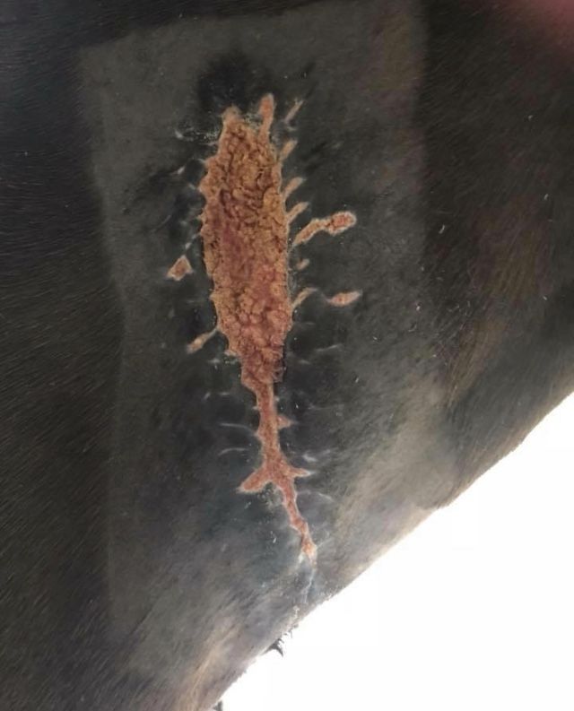 | Dire merci | pour en revenir à la cortisone tu en as des « plus sauf » spéciale derme et qui est très fiable en concentration souvent couplée avec 2/3 ATB. En humain c’est pas mal. J’ai pas de recul sur l’utilisation chez le cheval , mais nous en consigne clinique on évite vraiment. Mais ça dépend un peu du cas. J’aimerai bien un cas prochainement pour tester (si mes chevaux me lisent... je parle d’un patient à moi pas de mes propres chevaux ... ils peuvent m’éviter ça). Pour l’histoire du Vtrap , normalement il se colle sur lui même. Vstrap (elastostrap en nom commercial humain) se colle à la peau et sans produit pour enlever ça epile sévèrement (surtout quand tu prends du 6...). Du coup un coup de tondeuse à blanc, et on laisse que les bords collés pour les chevaux chatouilleux. |