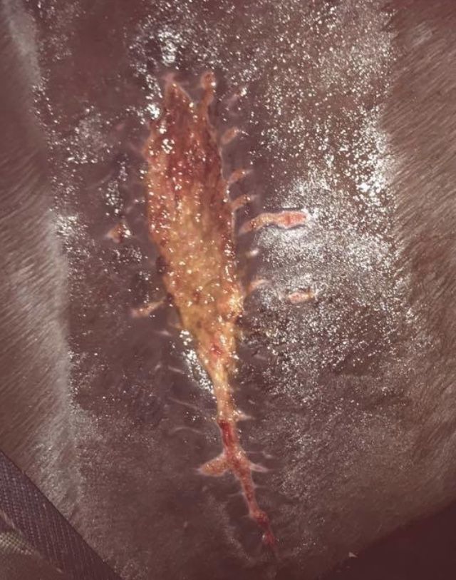 | Dire merci | Jsui pas sur qu’il y est quelque chose c’est peut être la cicatrisation de la peau qui donne cette impression j’avais un doute sur une agrafe étant donnée que j’en avais retrouver une Sinon aujourd’hui une photo avant mes soin j’ai bien doucher pour enlever les partie de croûte granuleuse qui sont tomber toute seule Et application de crème ![]() |